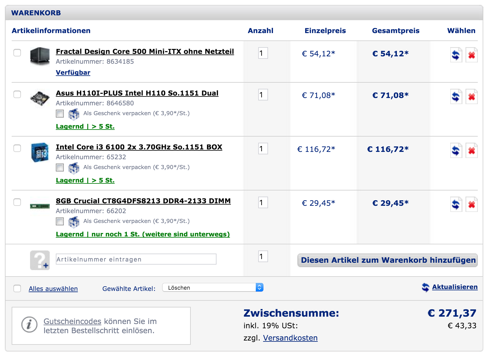 Ab und zu spiele ich noch mit ein paar VMs, deswegen der viele RAM. Wichtig ist halt das er möglich lautlos ist weil ich Lüftergeräusche gar nicht ab kann!