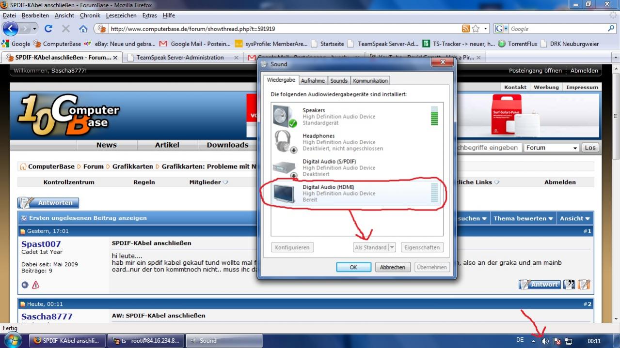 oard..nur der ton kommtnoch nicht.. muss ihc da jetzt irgendwie nocwas einstellen?