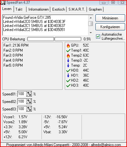 Leider bin ich noch nicht dazu gekommen das "How to Speedfan" genauer einzustellen. Damit habe ich nämlich auch Probleme. Ich kann dort z.B. mein GB Board nicht einstellen... doch dazu werde ich mich einlesen.