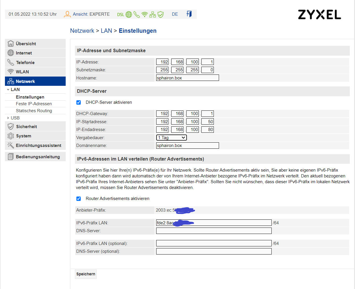 Dazu gehören zum Beispiel Mac-Adressen deaktiviert oder DHCP-Bereich und die Lease-Time ändern,