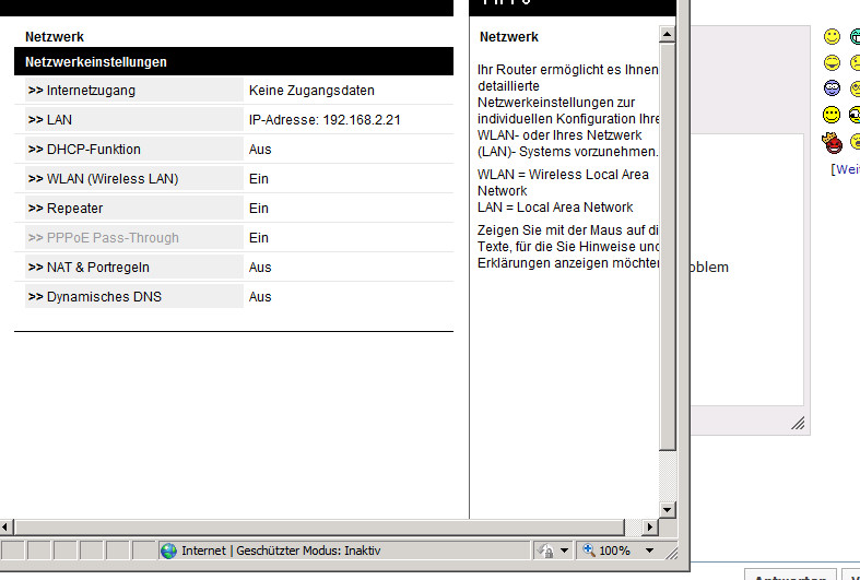 und den Speedport W 701V hinter der Fritzbox (Repeater).