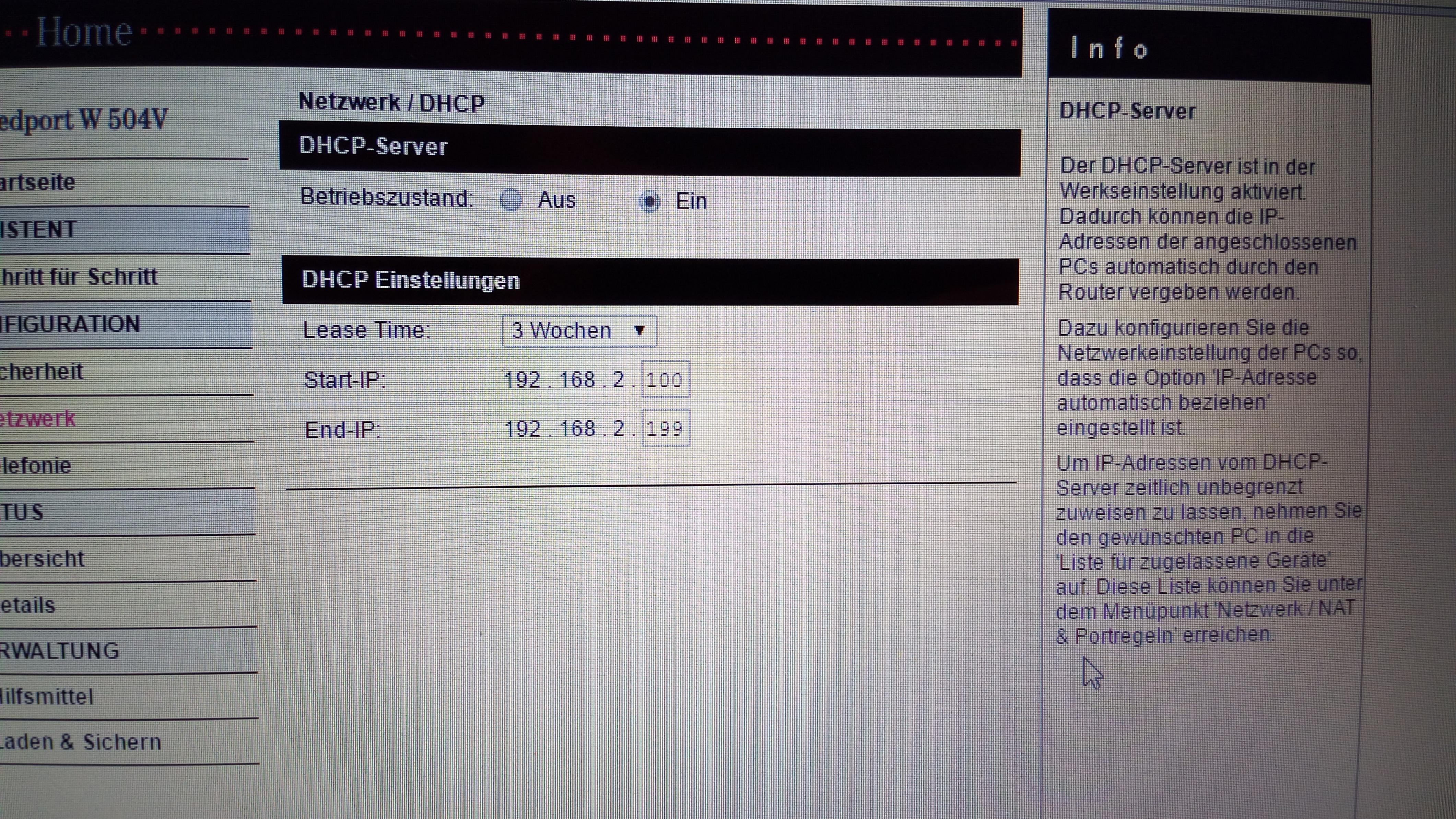 wlan konfiguriert und dann stand dort, nicht verbunden. connection failed, dynamic IP.