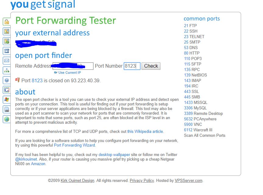 Meine IP müsste nun geändert sein, hab beim Port testen vergessen, mein WLAN auszuschalten, daher der Fehler...