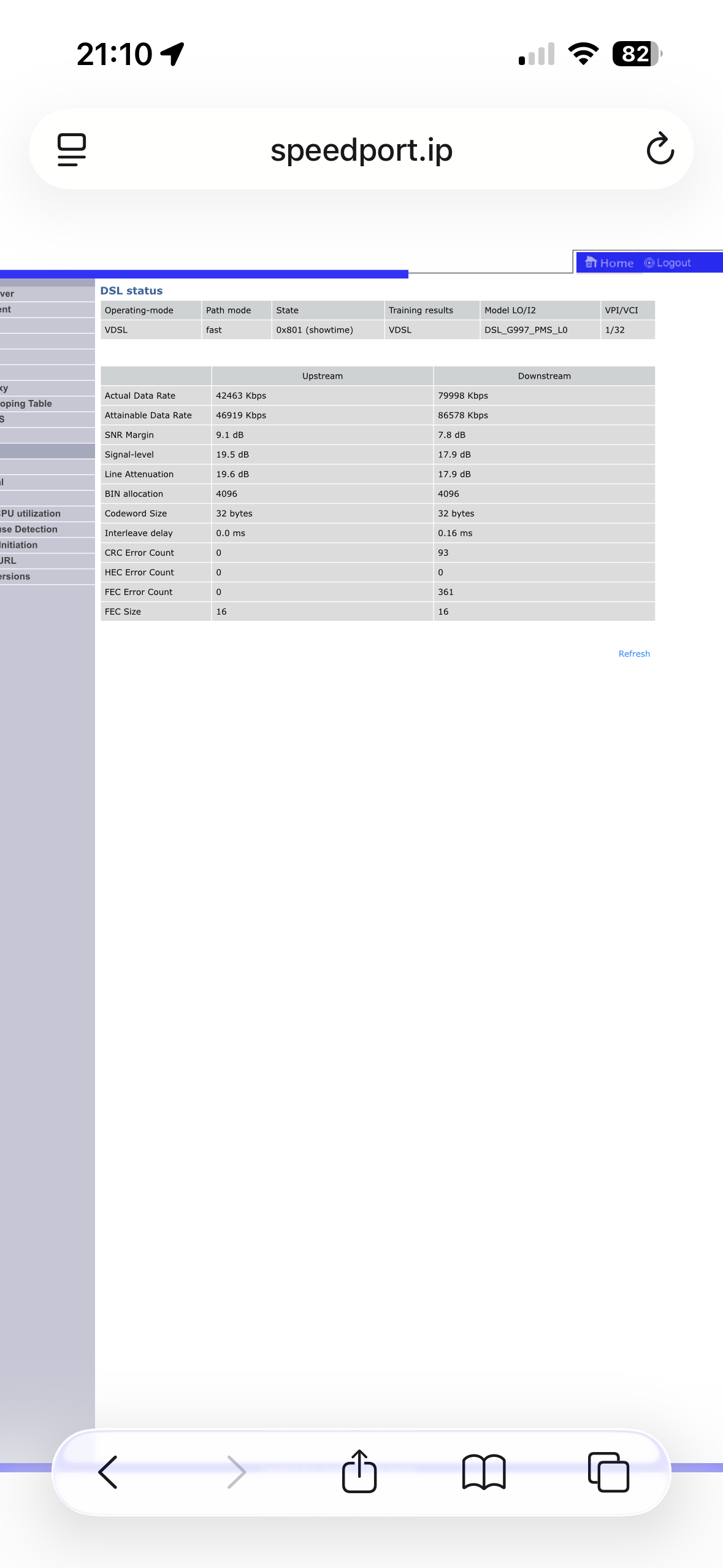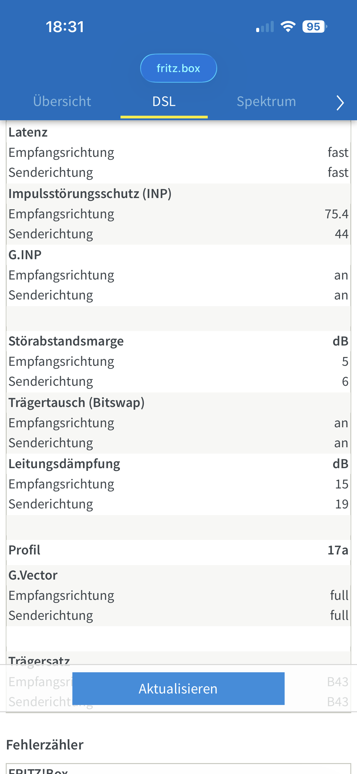 Kannst ja mal die Leitungskapazität mit dem W724V Typ B auslesen. Dazu musst du ins geheime Menü. Zuerst auf der Benutzeroberfläche einloggen und dann folgende Seite aufrufen: http://speedport.ip/hidden/hidden_index.stm