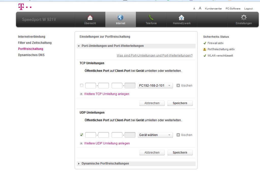 Speedport W921V für ip-Kamera Portfreigabe einrichten