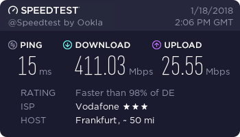 Speedtest meines neuen UnityMedia 400Mbit Anschlusses