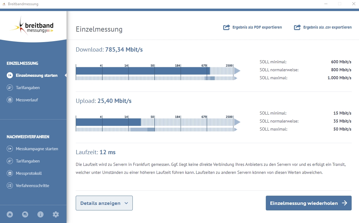 Verglichen mit der Breitbandmessung von der Bundes Netzargentur habe ich da viel Abweichung. Was sollte da eher stimmen ?