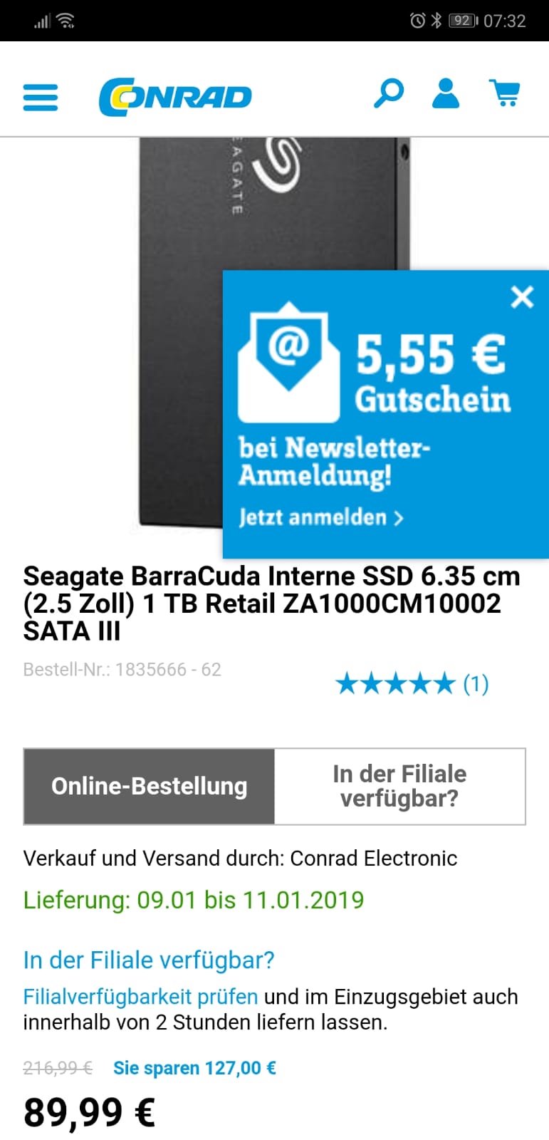 Bei den m.2 hat sich gut was getan in den letzten Wochen. Vor Weihnachten war der Preis der 970 EVO 2TB bei seriösen Anbietern noch wochenlang über €500 wie fest gewurzelt. Jetzt bekommt man sie für €446.