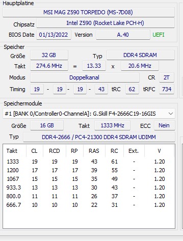 Habe im Bios schon auf Manuell gestellt auf 2666 (wie der Speicher sein sollte)