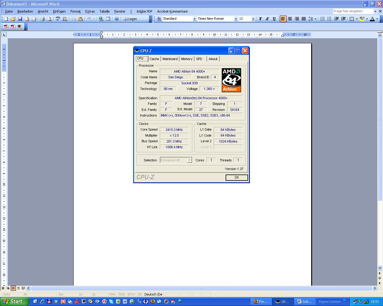 Der Cpu Athlon 64 4000+(san Diego) läuft mit ein Busspeed von 200 Mhz.