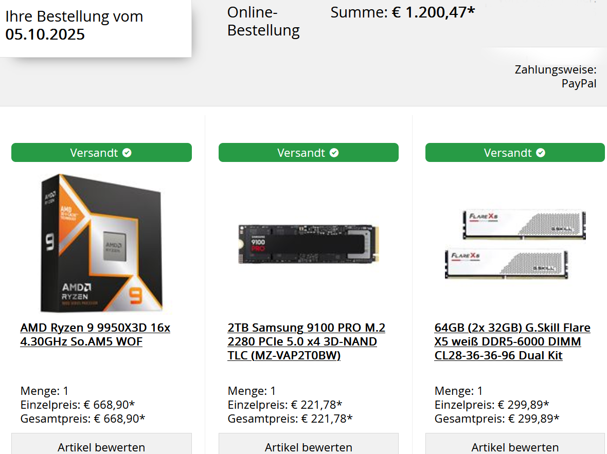 Oder wo das System warum auch immer abgeraucht ist.Ist mir z.B. am 22.12.2022 zum Glück passiert und nicht jetzt auf einmal startete der PC nicht mehr.Laphonso schrieb:Beschissen ist es für die, die gerade gar nichts haben für ein fertiges/neues/gebrauchtes System und eigentlich "nur" Anfang 2026 abwarten wollten.