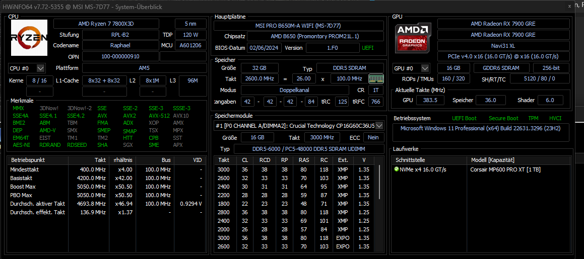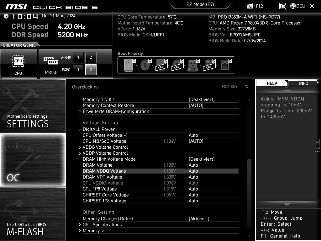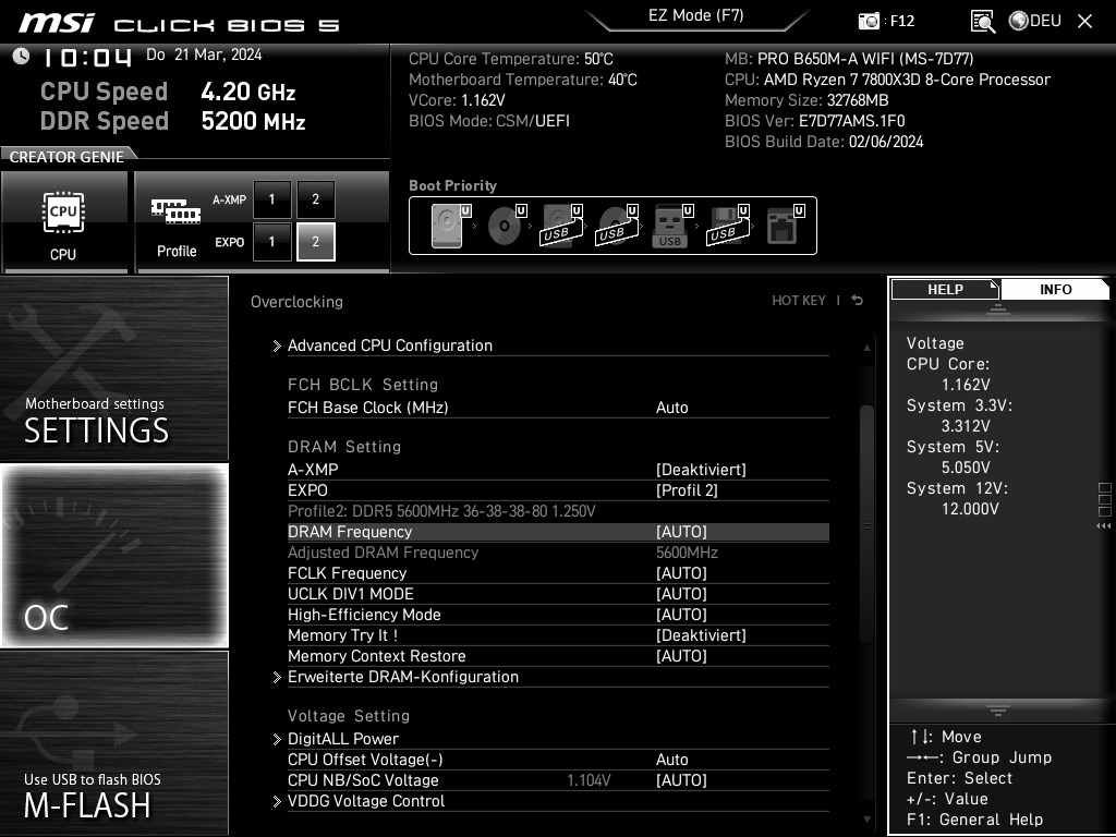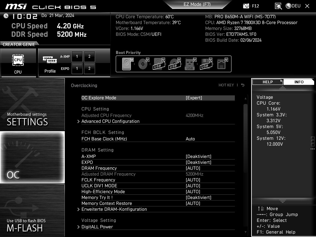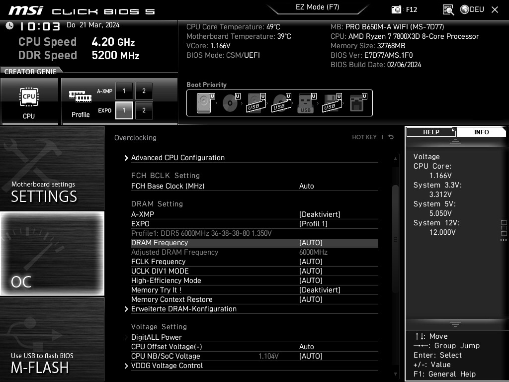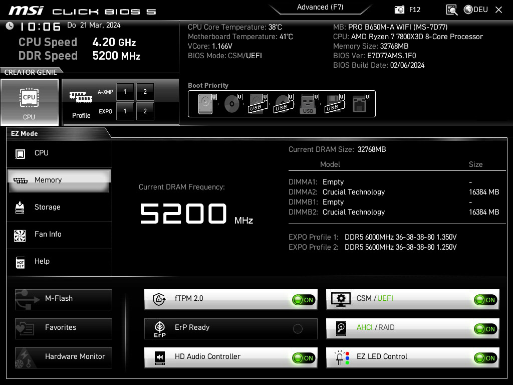 Hab Rayzen 7 7800x3d / Msi Pro B650 M-A wifiwollte den speicher auf 6000 laufen lassen geht nicht