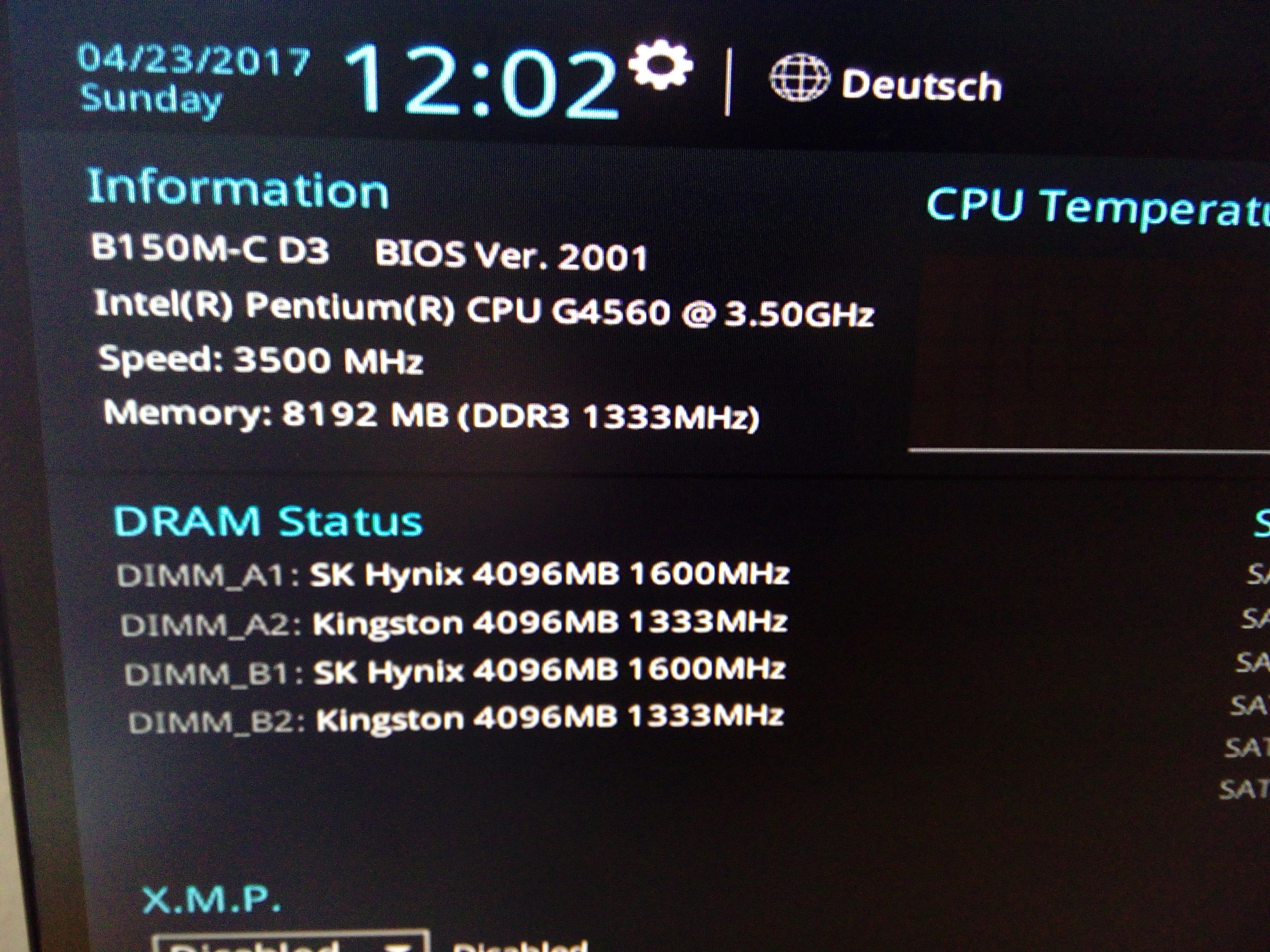habe mir einen Pentium G4560 geholt. Jedoch kann ich nicht auf den vollen Arbeitsspeicher zugreifen. Habe 4 x 4 GB eingebaut, es sind aber nur 8 GB verfügbar. Der RAM und das Board sind wohl nicht defekt. Lief vorher mit einem G4400 problemlos. Im Bios werden alle Module aufgeführt aber als Gesamtspeicher nur 8GB angegeben. CPU-Z zeigt alle 4 x 4 GB an. Windows hat aber trotzdem nur 8GB zur Verfügung.