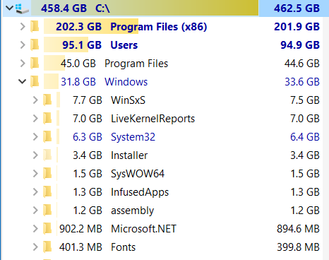Die "SYSTEM-Auslastung" bzw. Speicherbelegung wird nach einer Neuinstallation ca. gleich bleiben da eben nichts von der alten Installation übrig bleibt.