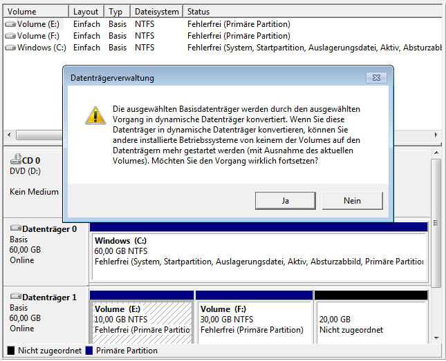Kann ich im nachhinein von D: speicherplatz zu C: freigeben und wenn ja wie? Ich könnte auch die komplett formatieren falls ich dann eine Chance diesen speicherplatz an C: anzugliedern.