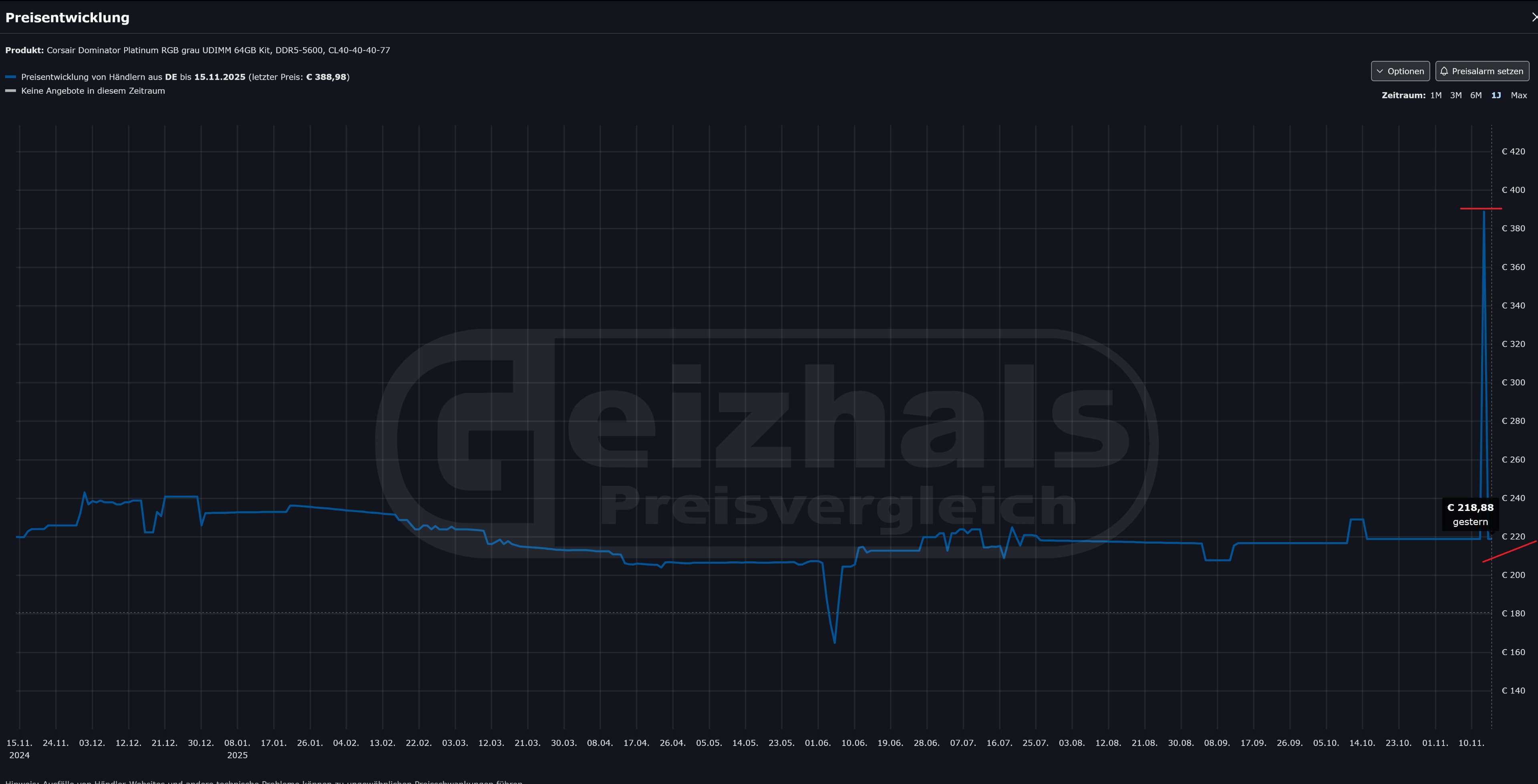 Speicher war Anfang des Jahres so günstig wie noch nie, stimmt! Inzwischen liegt der Preis wieder ungefähr auf dem vorherigen Niveau wäre bei rund +30 %,