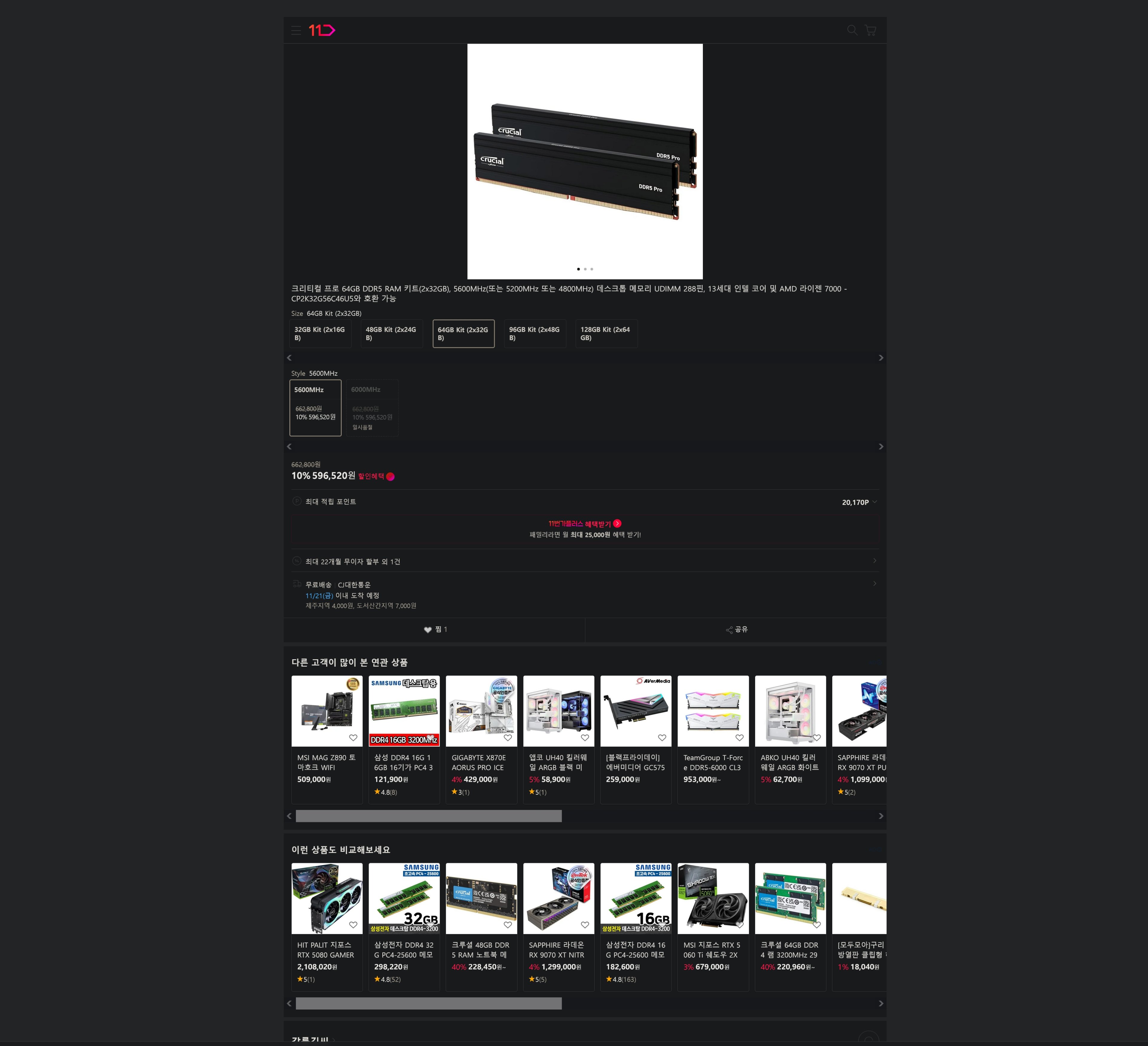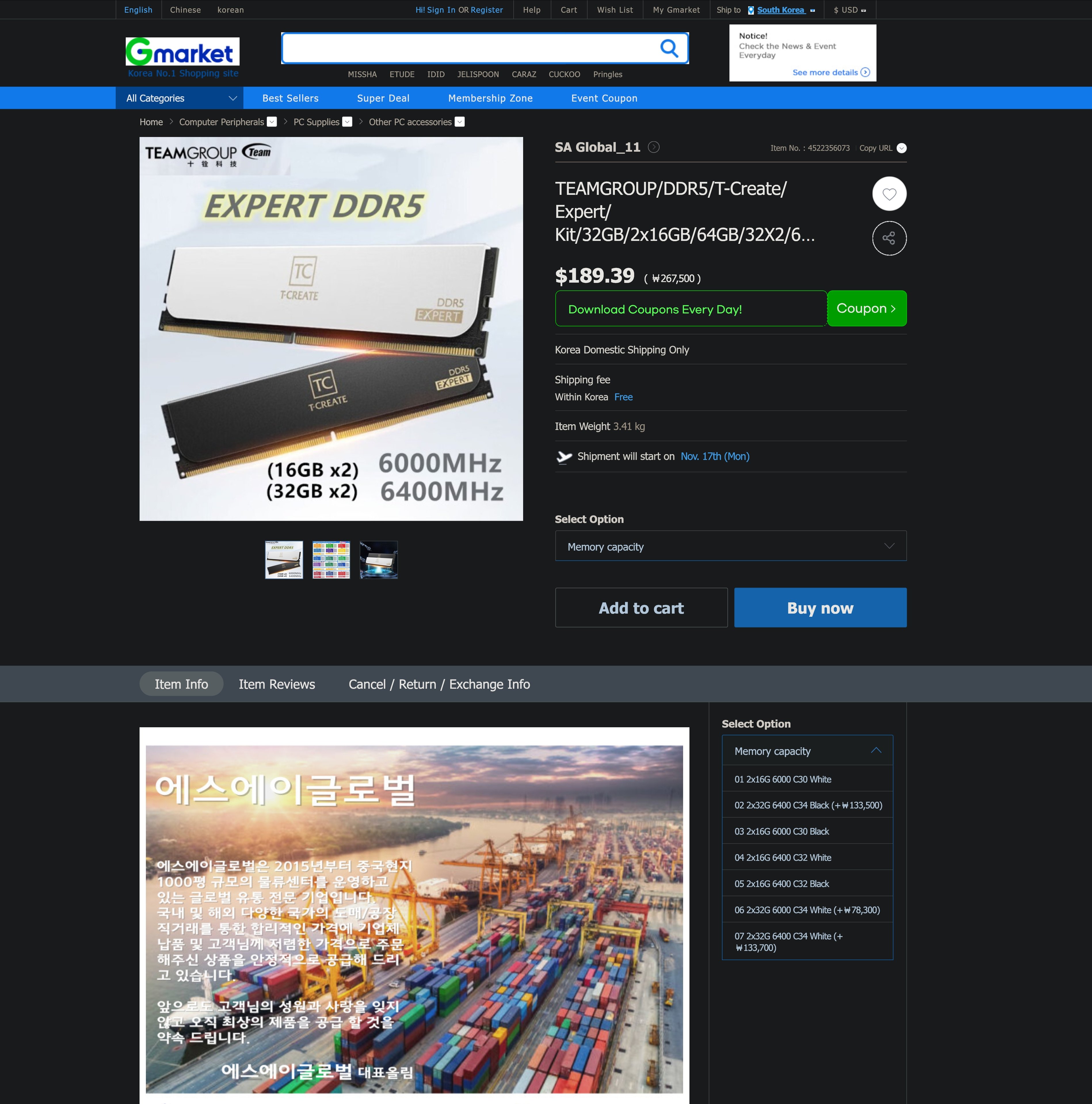 64GB DDR5 ab $189.39 ( ₩267,500 )