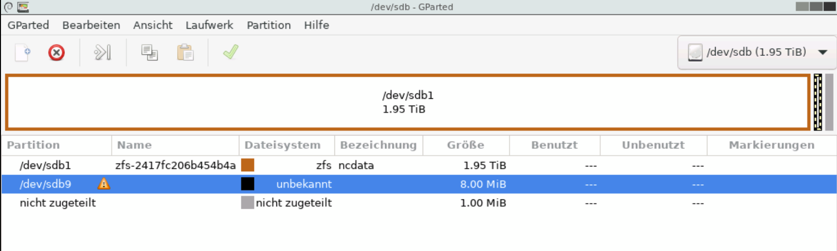 Habe halt auch zfs Snapshots, doch wo lagern diese? Sollen angeblich 300GB groß sein und ncdata soll 1,09TB verfügbar haben und dann 803GB belegt. Also insgesamt 1,9TB. Kann aber nicht sein. Über "df -h" ist ncdata ja 1,6TB groß und da wird auch nur angegeben, dass 500GB in Benutzung sind, also genau die Menge die herauskommt, wenn ich die Snapshots von den 803GB abziehe.