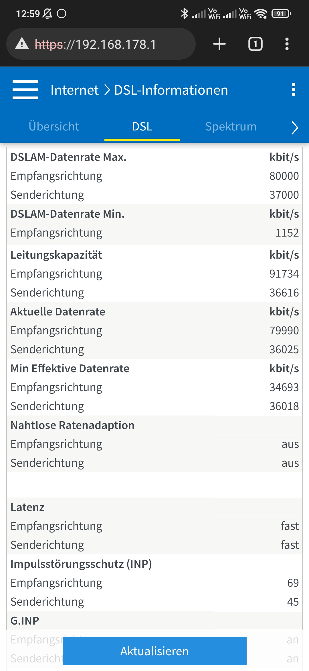 Also voll sync hatte ich noch nie aber eigentlich lief die Leitung ohne Fehler und so weiter und so fort, Telekom VDSL 100, hatte immer ca. 87/36 sync davon im Speedtest immer 80/30 nutzbar.