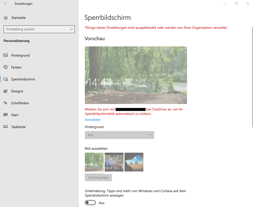 Ich habe diese Meldung (Verwaltet durch Organisation) auch.