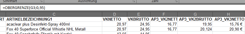In B2 sollen da 20% drauf gerechnet werden, aber es soll außerdem immer auf einen ,95 aufgerundet werden.