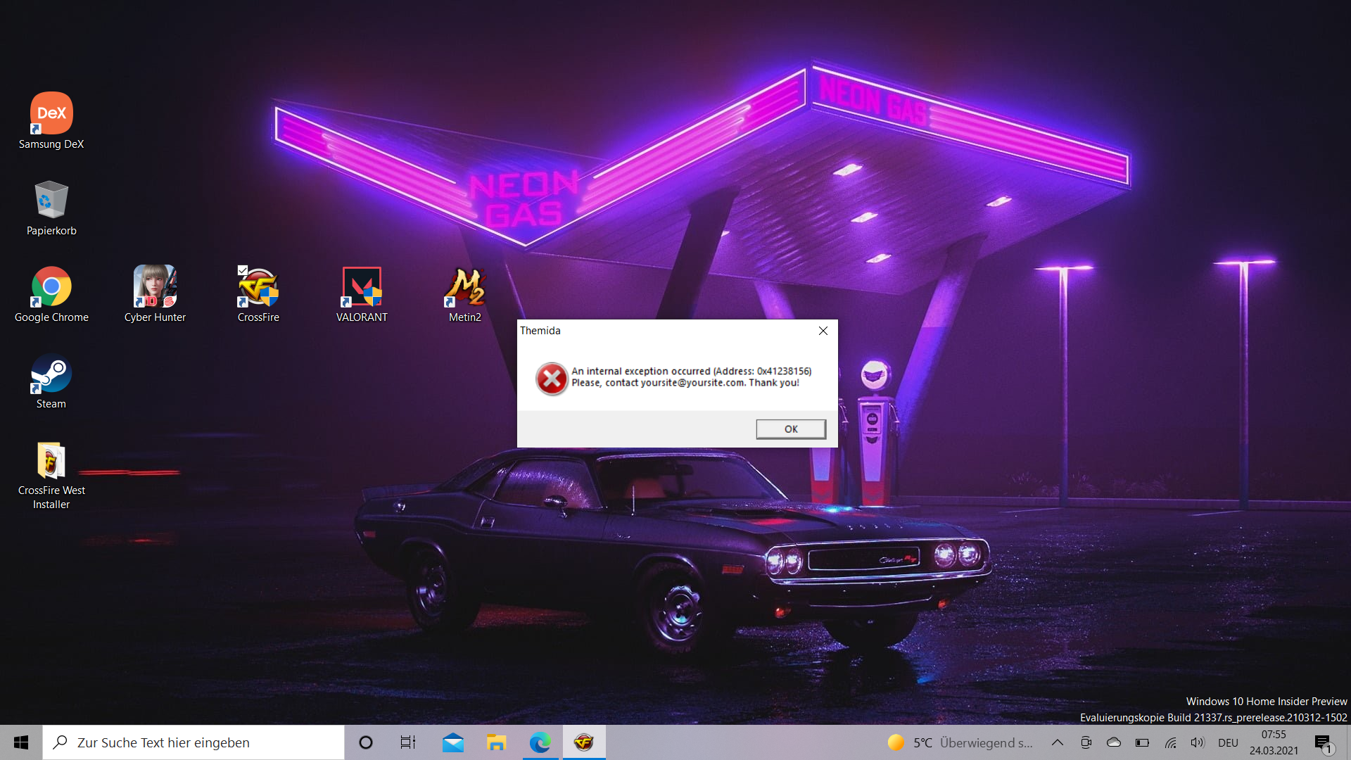Fehler Meldung : An internal exception occured Adress : 0x41238156 please contact yoursite@yoursite.com thank you