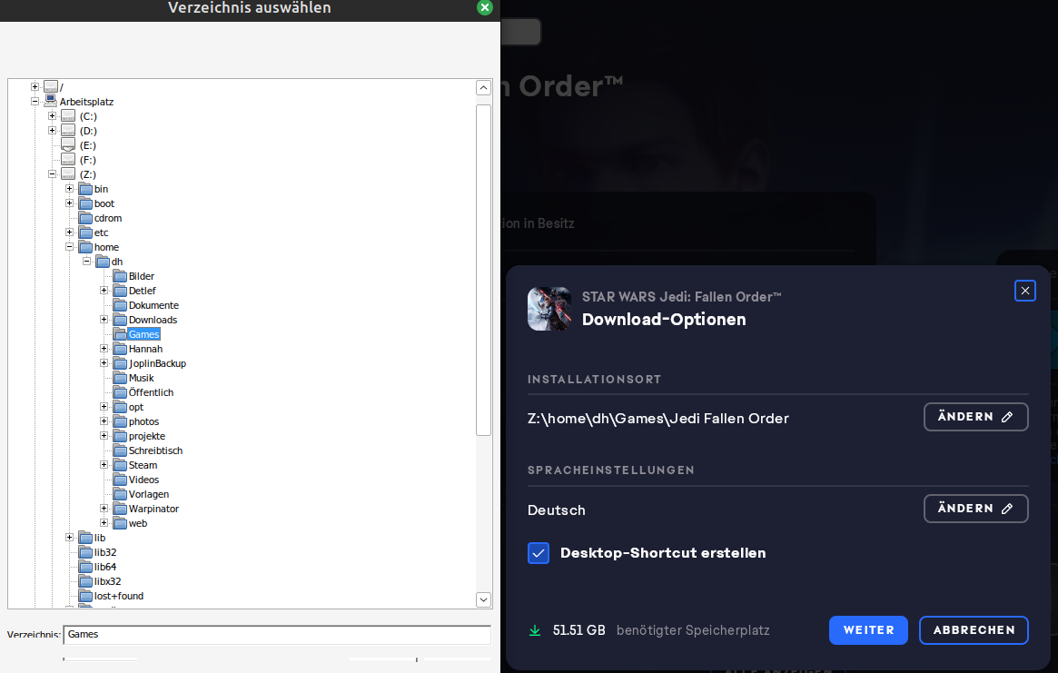 Funktioniert bislang gut. Nun wollte ich auch mal mein Jedi Fallen Order unter Mint spielen und habe dazu die Anweisungen in diesem Video befolgt.