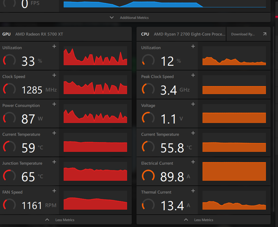 Und zwar habe ich das Problem, dass desto länger ich spiele, es anfängt zu stottern. Die erste Runde läuft super, jedoch beginnt ab der zweiten sich immer mehr Ruckler einzuschleichen bis es nahezu unspielbar ist. Ein Spiel Neustart sowie ein PC Neustart behebt meist das Problem temporär jedoch tritt dies immer wieder auf. Des Weiteren ist mir aufgefallen, dass dabei meist die GPU in der Taktung sowie dem Stromverbrauch und Leistung auf 0 % droppt. Die Temperaturen sind jedoch normal und die Auslastung bei rund 75 %. Meine CPU ist genauso wenig ausgelastet und auch in der Temperatur nicht auffällig warm. Der RAM wird dabei durchschnittlich um die 11 GB benutzt und der VRAM ist bei rund 60 % Auslastung. Treiber sind alle auf dem aktuellsten Stand (Version: 22.10.3). Anbei sind 2 Screenshots von genannten Einbrüchen, falls jemand eine Lösung oder einen Lösungsansatz hat bin ich über jede Antwort erfreut. Bereits probiert habe ich TPM zu deaktivieren, was es nur verschlimmert hatte. Die Windows Speicherdiagnose hat auch nichts gefunden, Spiel wurde auf Integrität überprüft, Stresstests von GPU und CPU ergaben keine Auffälligkeiten, was Spikes oder Temperatur angeht. Ich habe auch versucht, das Spiel auf minimalen Einstellungen zu spielen, was besser funktionierte, aber das Problem nicht behoben hatte.