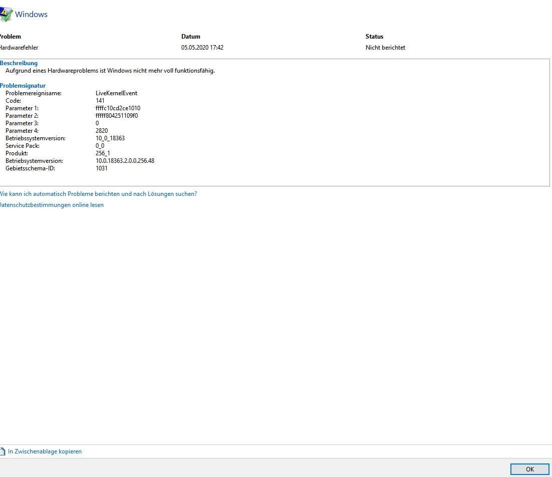 Also wenn ich meinen PC starte, welcher ca. 4 Monate jung ist und ich anschließend direkt ein Spiel starten möchte, hängt sich das Spiel auf und anschließend schmiert der PC ab und startet neu. Nach dem Absturz ist es mir direkt möglich das Spiel zu starten ohne das es abstürzt.. Wenn ich aber ca <10 min warte tritt das Phänomen des Crash nicht auf..