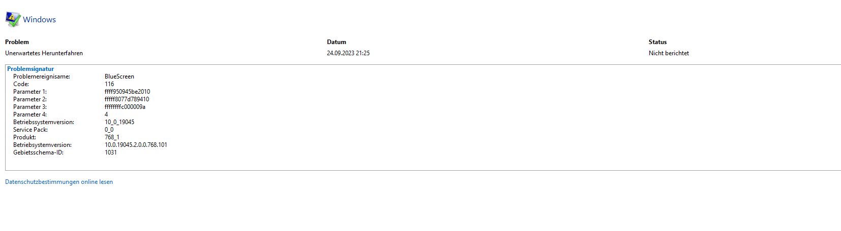 Habe ein problem mit rainbow 6 siege. Das Problem besteht darin, dass ausschließlich bei R6, mein Pc nach ca. 5 minuten freezt. ich höre den sound noch kurz, dann nicht mehr nach so 5 sekunden. Mein bre im discord hört mich auch noch kurz was sagen. keine eingabe reagiert. dann muss ich mein pc manuell herunterfahren und per knopfdruck neustarten. wenn ich aber nicht länger als ca 5 minuten warte, wird mein bildschirm während oder kurz nach dem anmelden in meinen pc schwarz. 5 minuten warten, nochmal manuell neustarten. danach, wenn ich dann r6 spiele geht alles. jetzt aber seit so 2 wochen stürzt r6 jedesmal ab wenn ich so 5 minuten drin bin auch wenn ich zwischen dem manuellen neustarten so 5 minuten warte. jedes mal freeze wie oben gesagt. das passiert ausschließlich bei r6. ea fc, f1 22, valorant, starwars battlefront. alles andere läuft einwandfrei und r6 ist das unaufwendigste spiel. wenn ich im zuverlässigkeits verlauf nachschaue steht immer bluescreen 116, dazu unten noch ein zwei bilder.