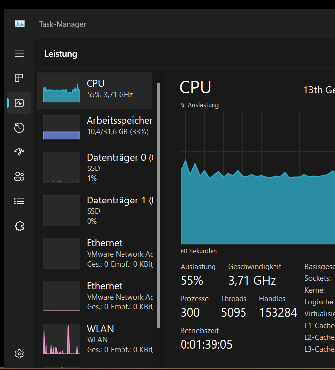 Ich erfülle für beide Spiele die empfohlenen Systemanforderungen, jedoch ist es im Vollbildmodus unspielbar, da alles laggt. Im Fenstermodus funktioniert es einigermaßen. Im Task-Manager habe ich beobachtet, dass meine CPU während des Spielens bei 100 % Auslastung liegt, während die Grafikkarte nur etwa 25 % ausgelastet ist. Laut Intel sollte mein Prozessor bis zu 5 GHz hochtakten und verfügt über 12 Threads, weshalb diese Anforderungen eigentlich kein Problem darstellen sollten.
