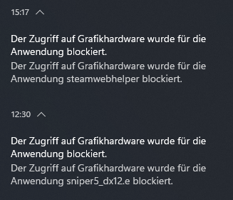 Zuerst kann ich fast keine Spiele spielen, Sniper Elite 5 crasht nach 15-30 Minuten Spielzeit oder fast sofort, manchmal kommt auch die Meldung Treiber-Timeout, bei Valorant gibts manchmal ein Crash ohne und mit Fehlermeldung (Critical Error)