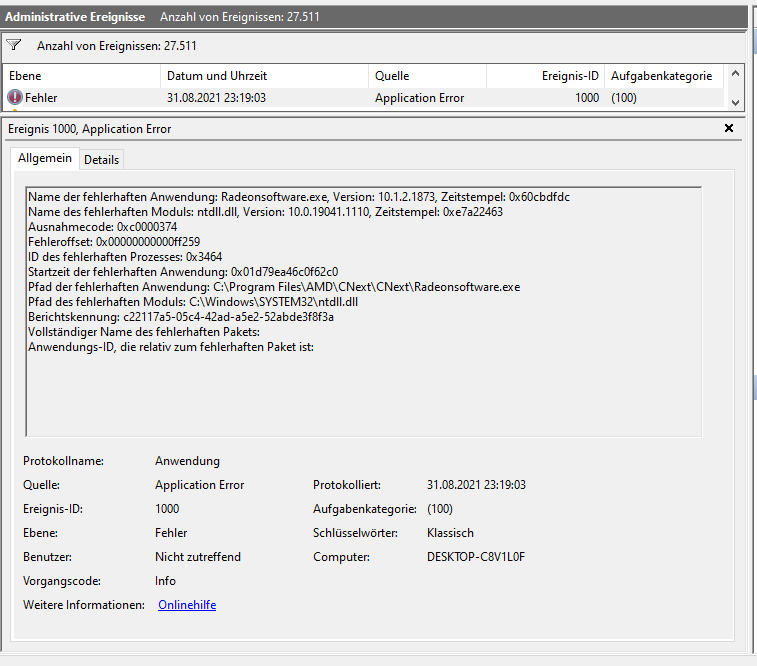 Ich habe seit gestern das Problem das Games (Assassins creed odyssey, F1 2019, Farcry 5) nach etwa 10-30Minuten im Spiel abstürzen. Das Spiel freezed erst, dann sind alle Monitore schwarz und der Desktop baut sich langsam wieder auf.