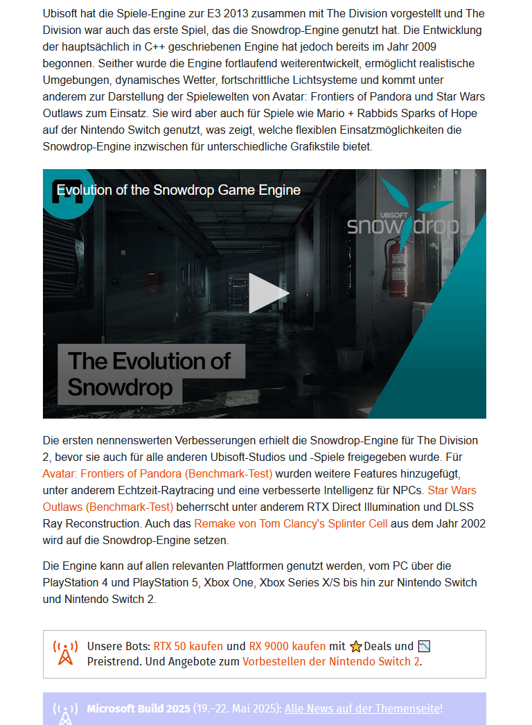 Soweit ich weiß hat keine der bekannten Ubi-Engines (Dunia, Snowdrop, Anvil) je deren Studios verlassen.BrollyLSSJ schrieb:Da Ubisoft die Engine im Video vorstellt: Wollen die die auch an andere Firmen lizensieren?