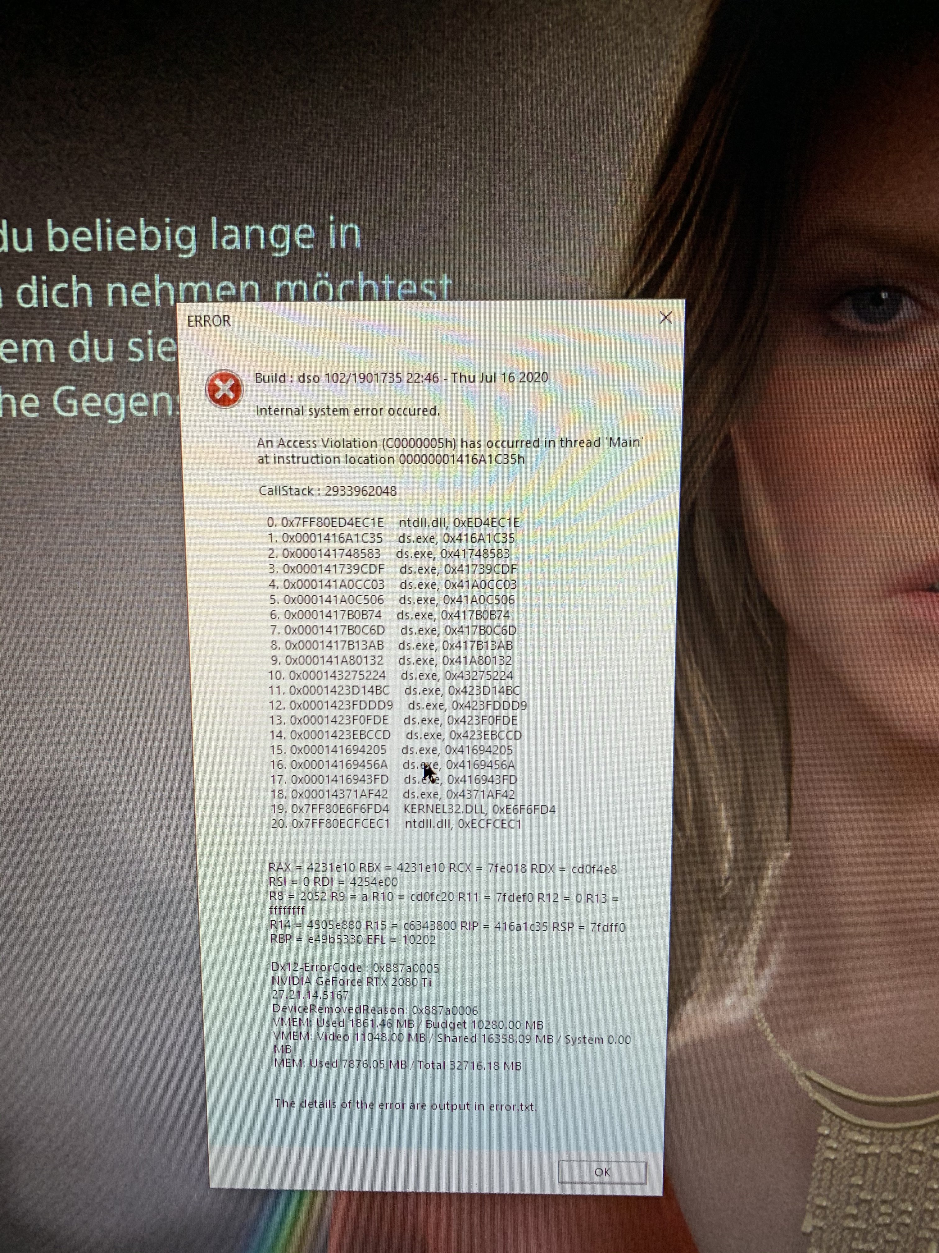 nun kam bei Death Stranding folgende Fehlermeldung: