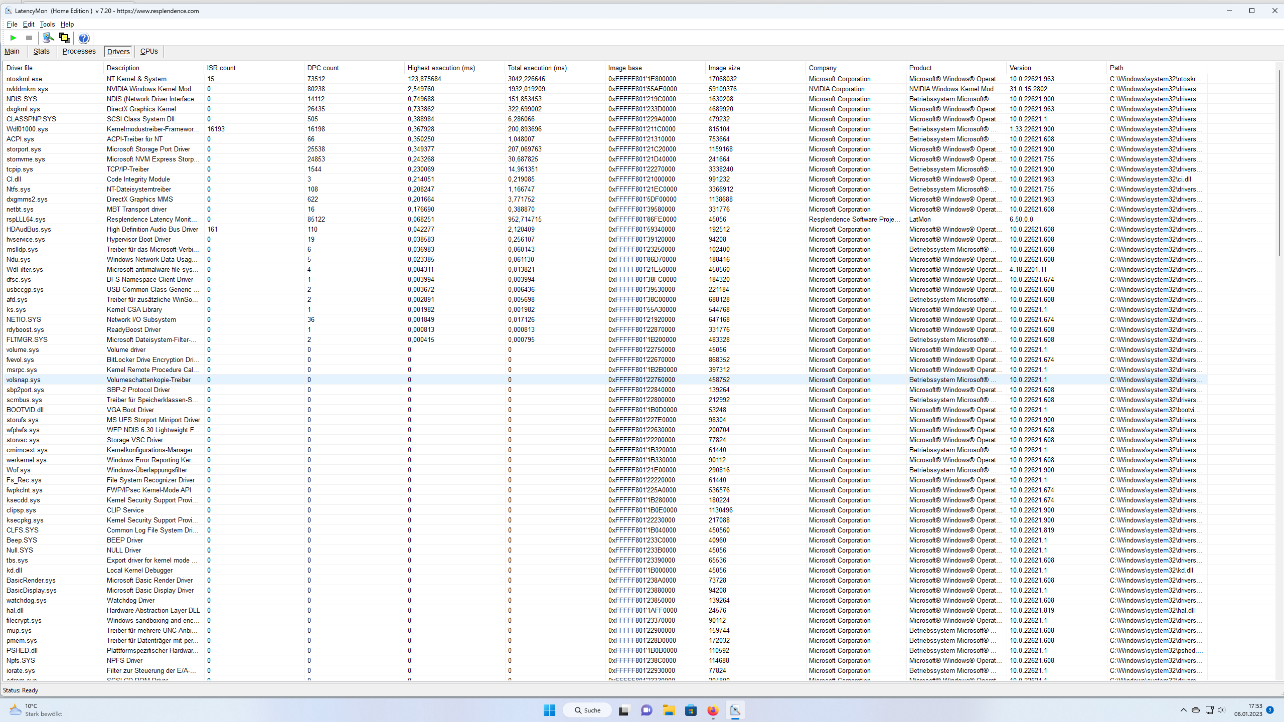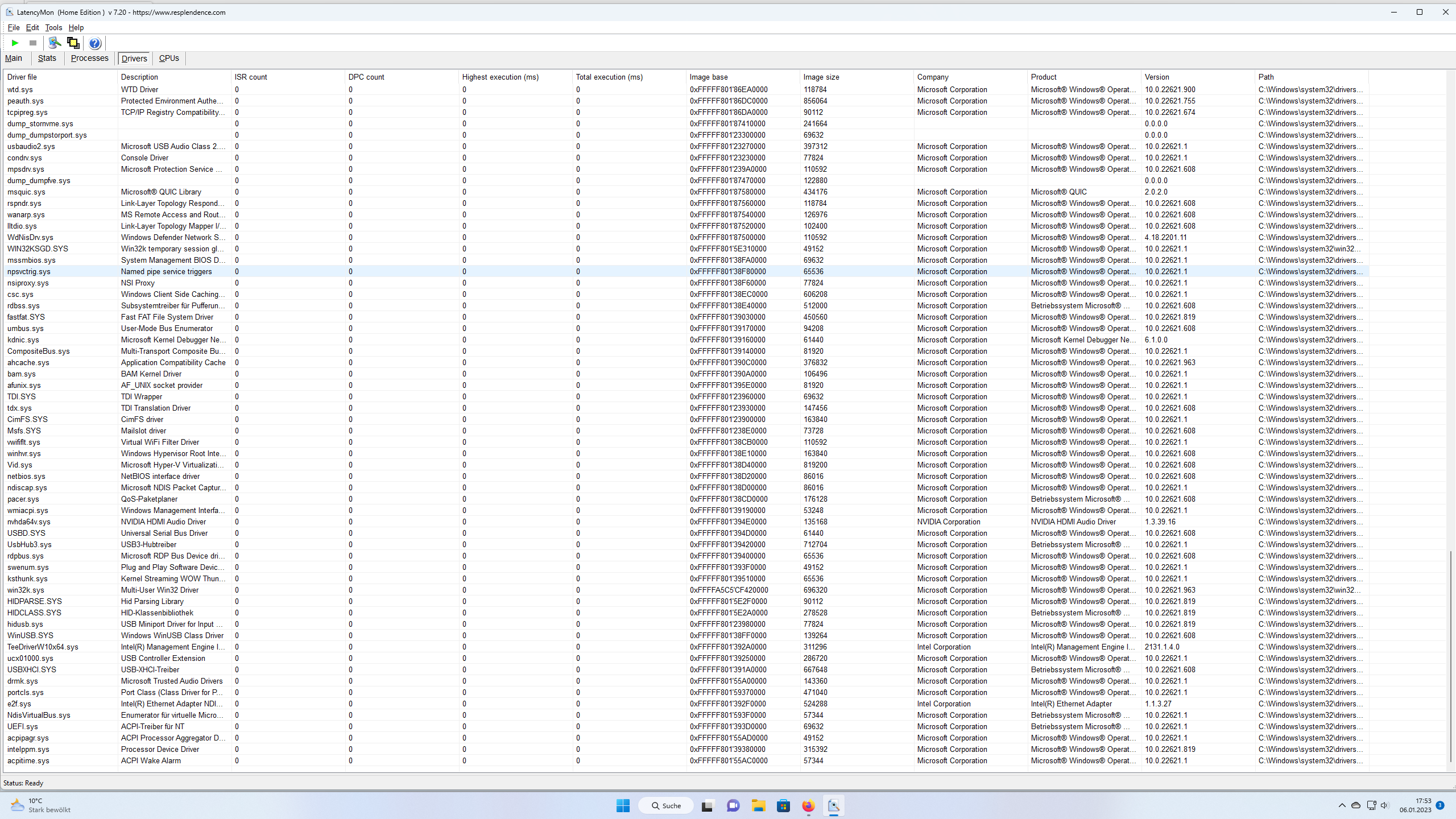 Driver with highest ISR total time: Wdf01000.sys - Kernelmodustreiber-Frameworklaufzeit, Microsoft Corporation