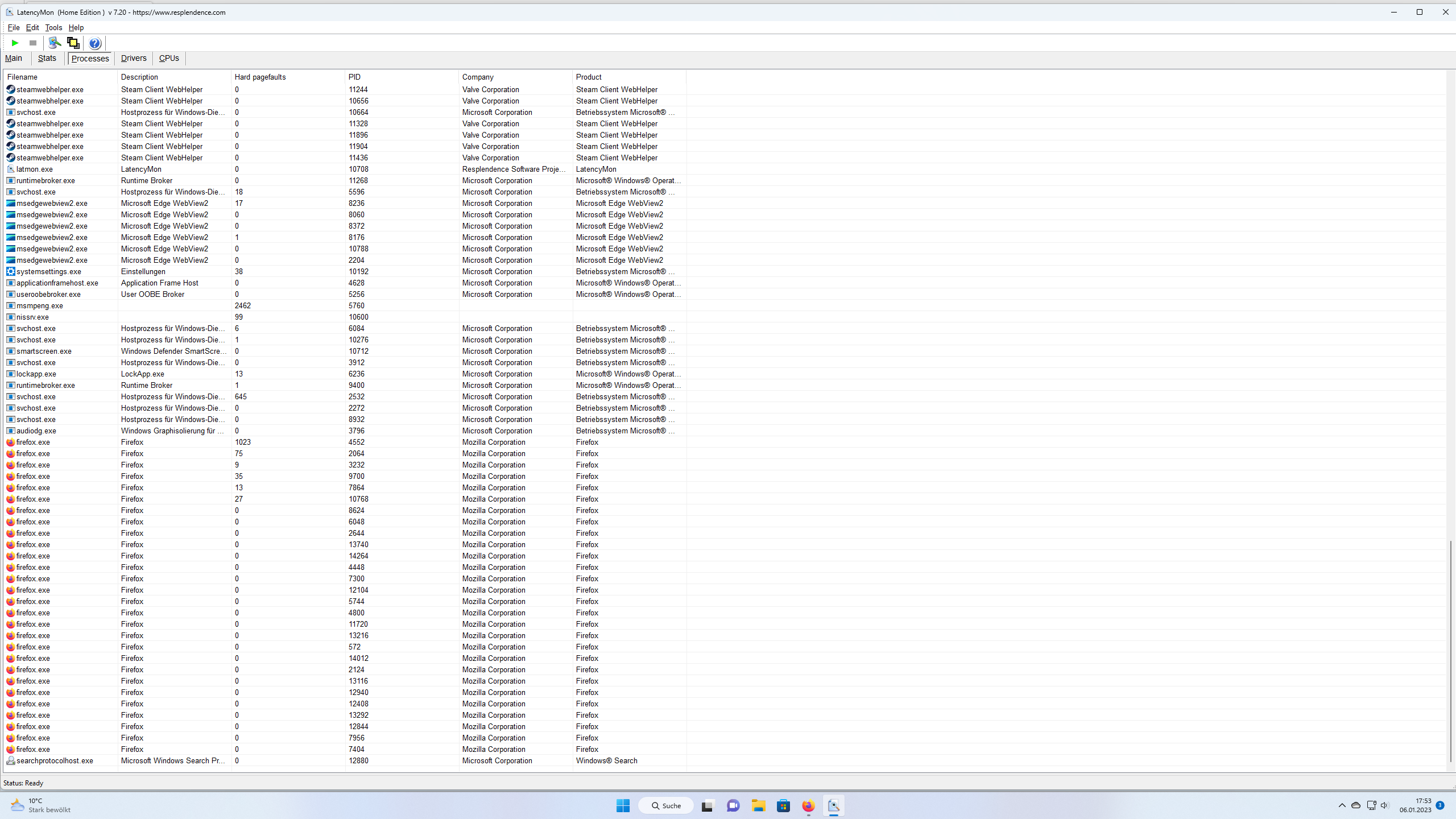 NOTE: some processes were hit by hard pagefaults. If these were programs producing audio, they are likely to interrupt the audio stream resulting in dropouts, clicks and pops. Check the Processes tab to see which programs were hit.