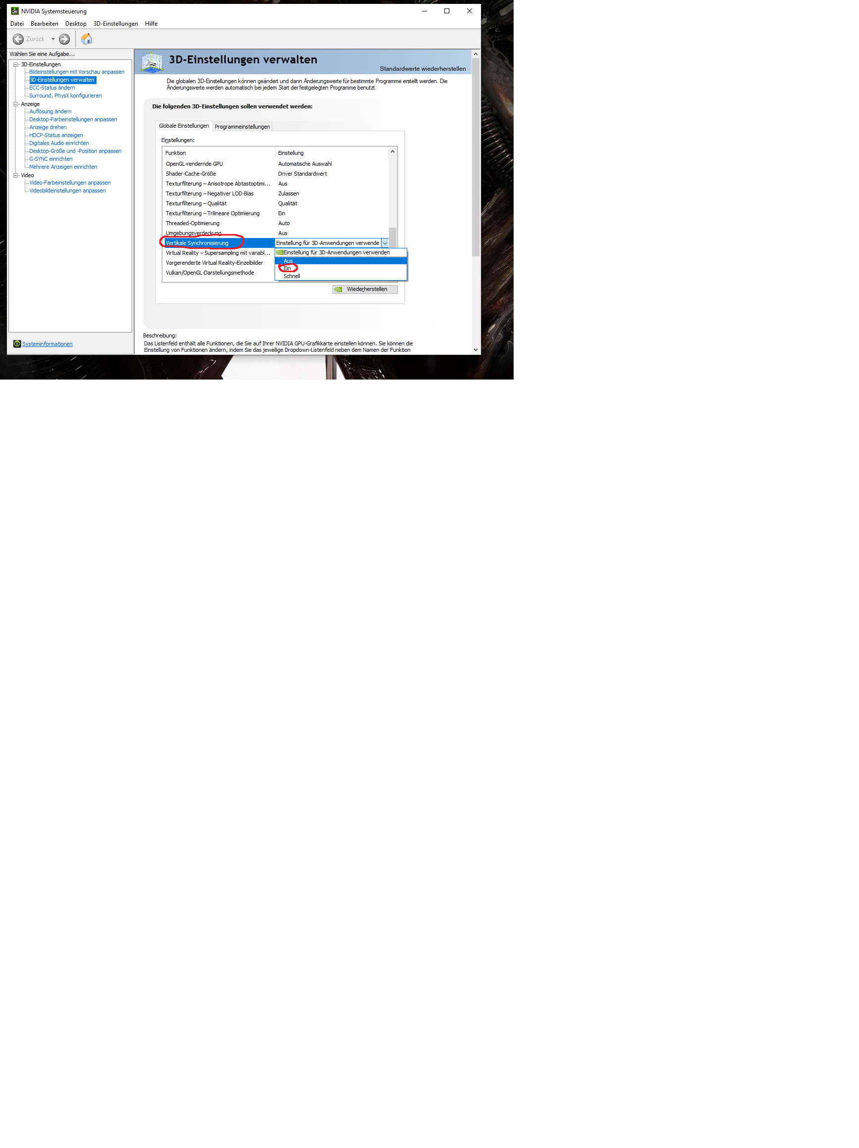 Edit: Sorry, im letzten Bild bei Vertikale Synchronisierung" hab ich aus versehen "EIN" eingerahmt, muss aber umbedingt auf "AUS"