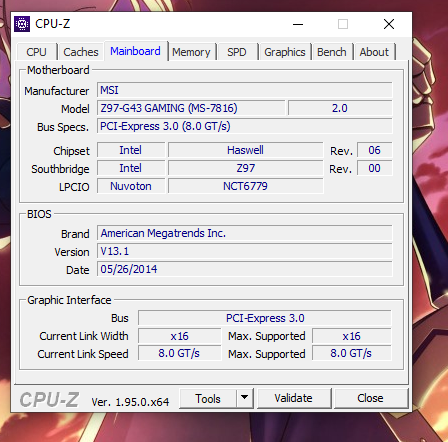 - Mainboard: MSI Z97-G43 Gaming