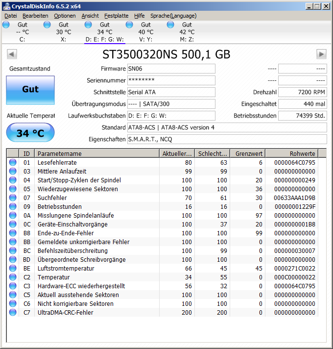 Wenn man prüfen will wie es einer Festplatte geht - einfach HD Tune - dort gibt es einen sehr kurzen aber informativen Benchmark.