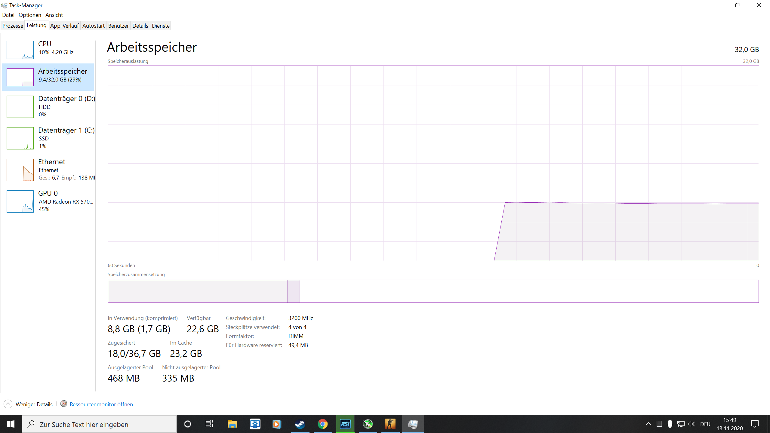 doch das tut er jetzt nicht mehr, es ist egal ob ich PostScritum oder Assassin's Creed Valhalla, watch dogs Legion Battlefield 5. Egal was ich Zocke er nutzt nie mehr als 11 Gigabyte mehr sind nicht drin