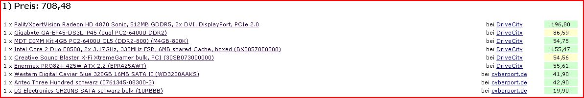 - Ich bitte euch bei euren Zusammenstellungen euren Grund für die einzelnen Komponenten anzugeben (ich weiß eure Mühe zu schätzen, Danke !)