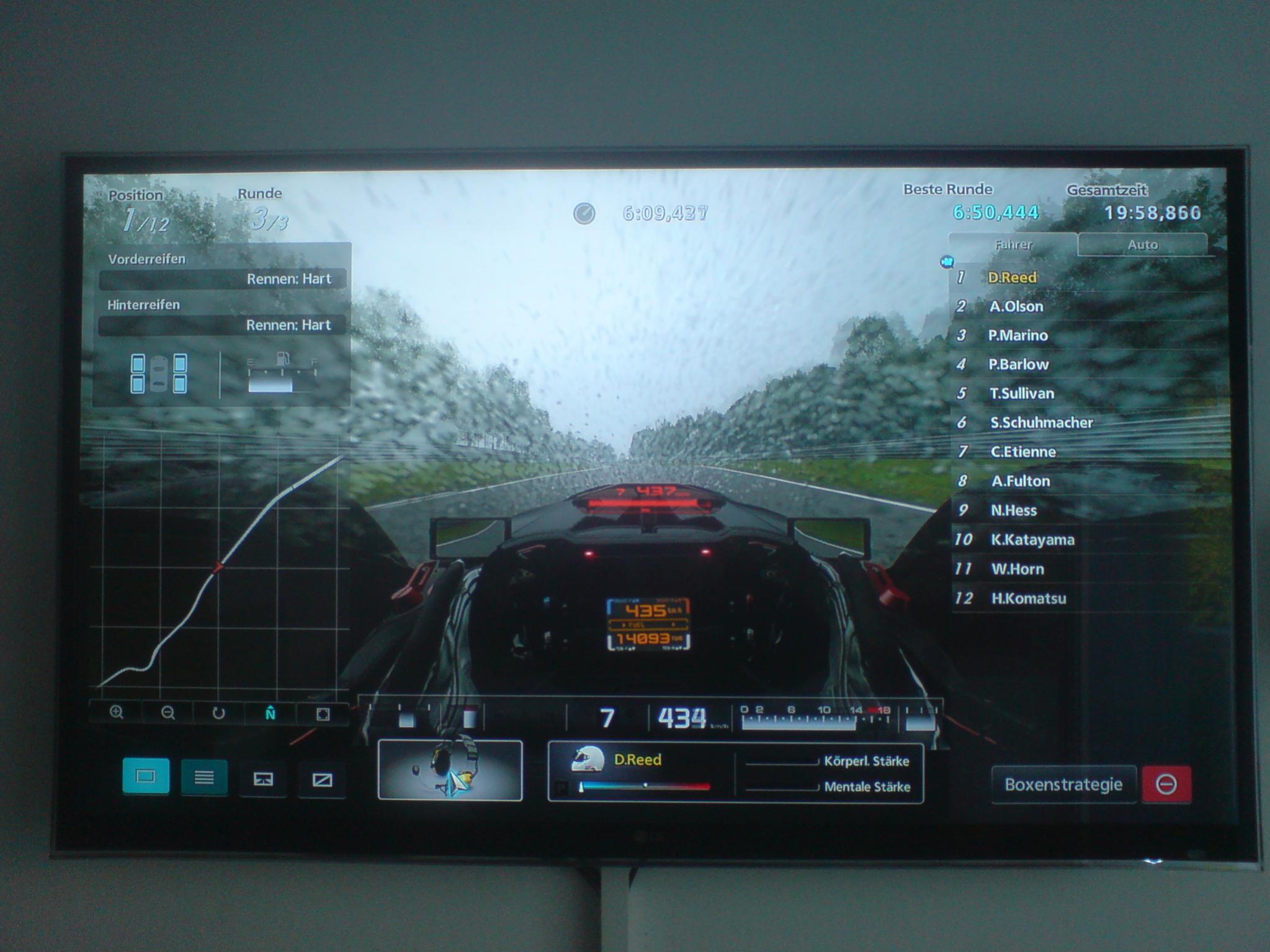 Es ist das Auto X2010 vom Spiel Gran Turismo 5 bei Regen auf der Strecke Nürburgring Nordschleife .