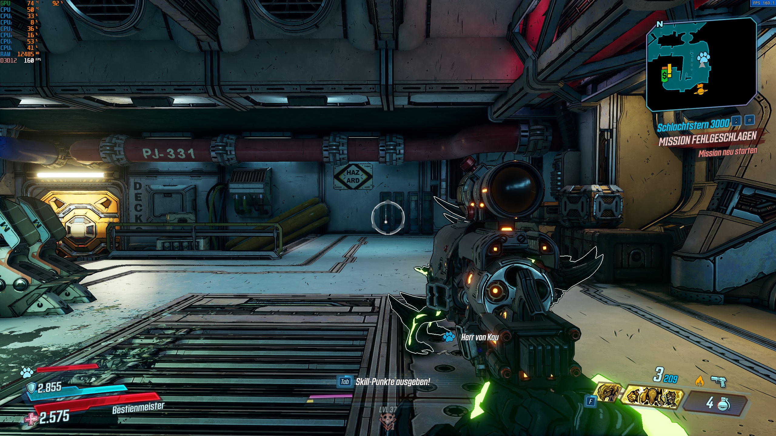 mein sys: 9900k bricht auf 70 fps ein. völlig normal in borderlands 3. wird dein kollege auch haben