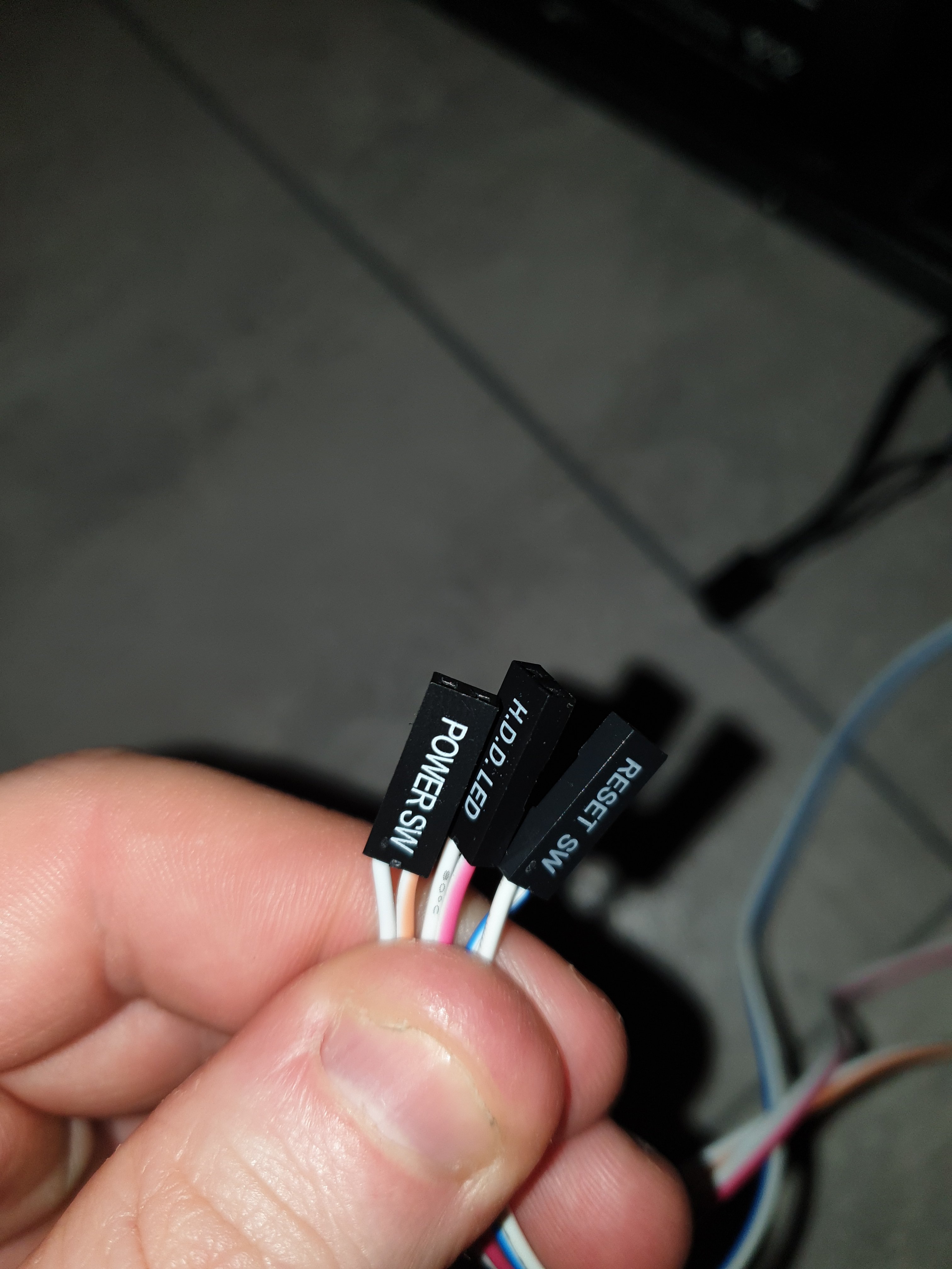 Ich habe noch ein problem wo schließe ich den power knopf an? Habe das laut anleitung angeschlossen an den pins aber der pc startet nicht..