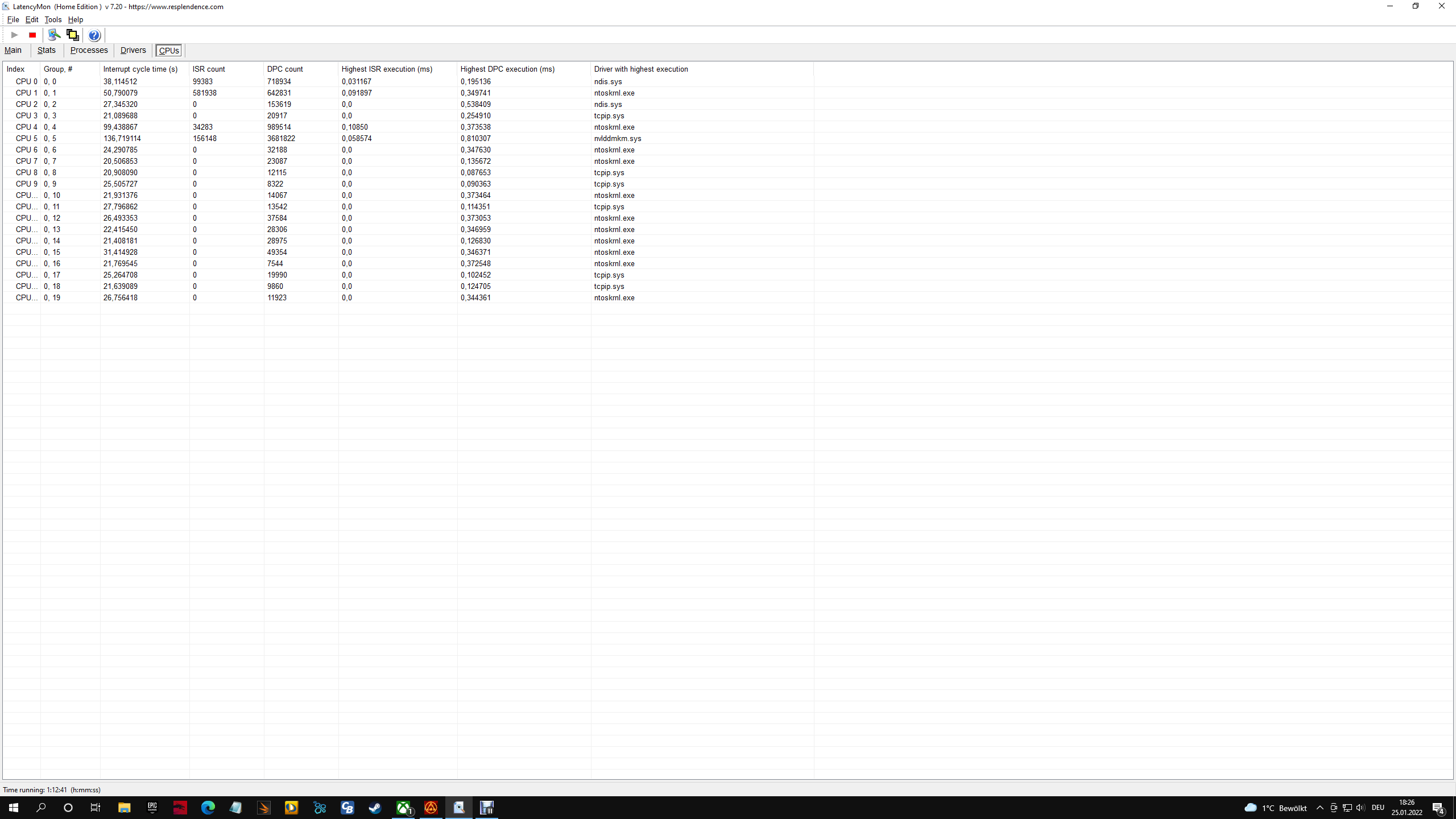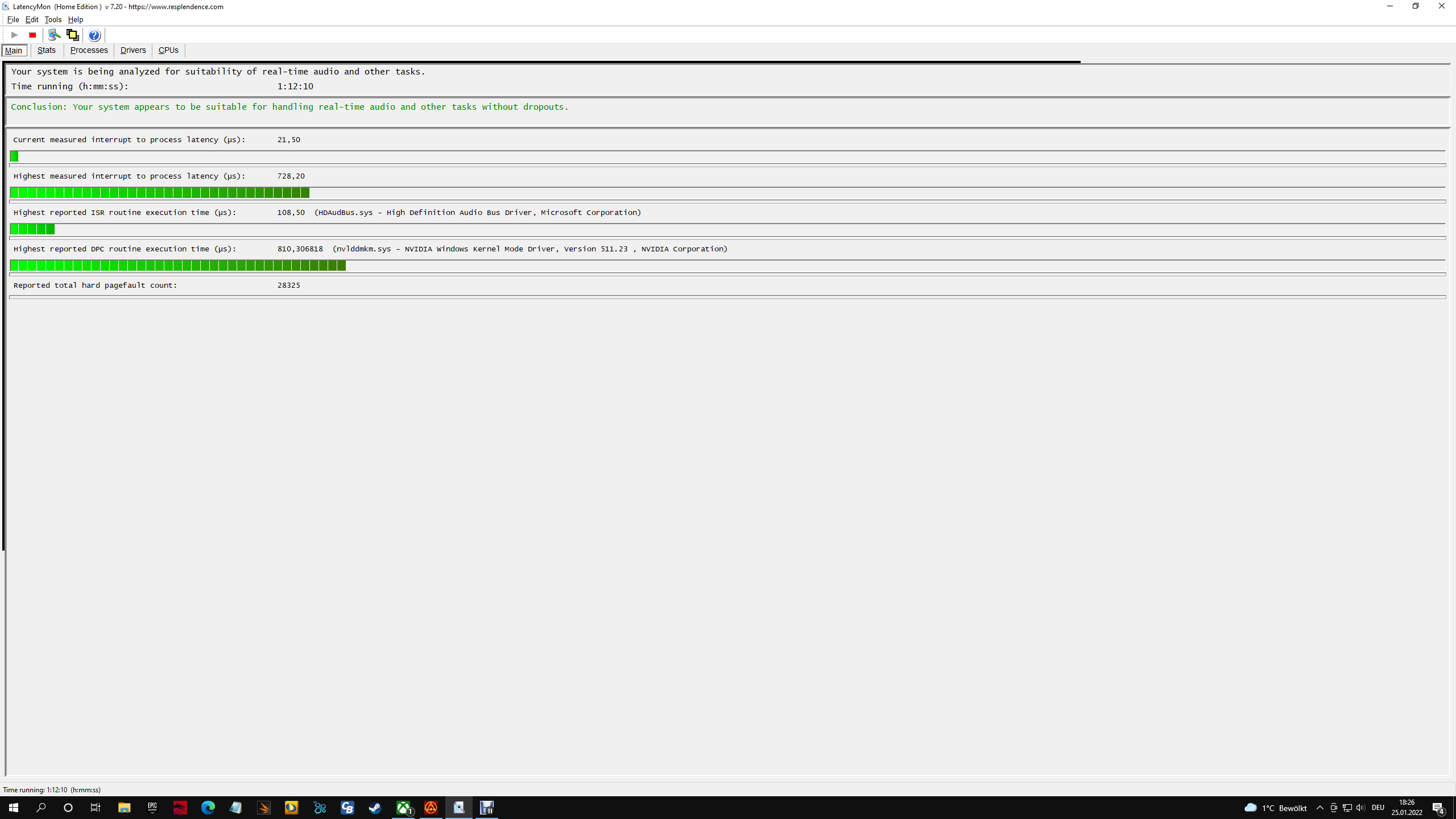 Also LatencyMon ist, wie bereits genannt, unauffällig. Sieht bei meinem AMD System mit alter Kepler Grafikkarte (GTX 670) genau so aus.