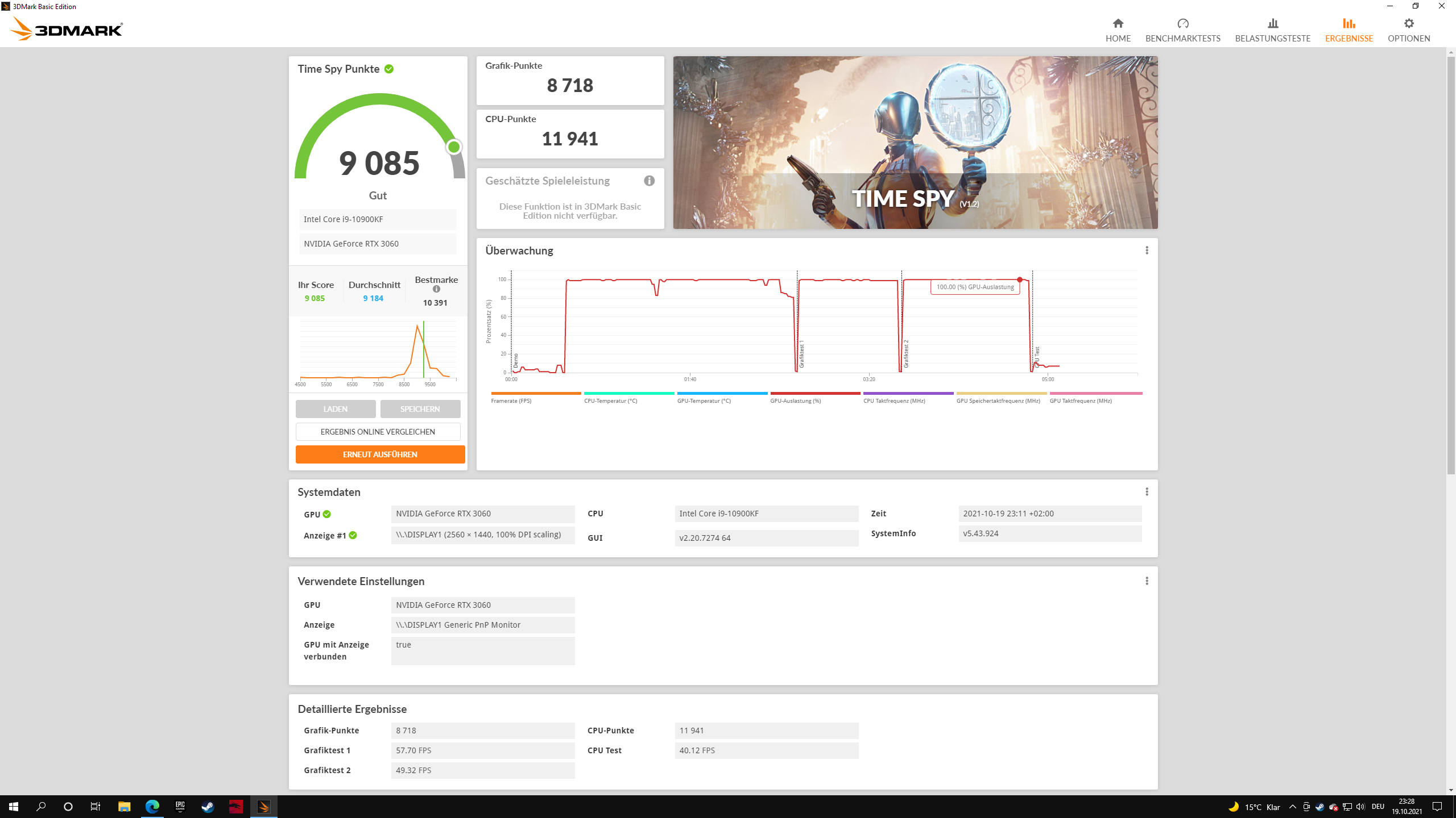 Dein Timespy-Ergebnis sieht völlig in Ordnung aus und meiner Ansicht nach kann man damit ausschließen, dass das Problem bei deiner Hardware liegt.