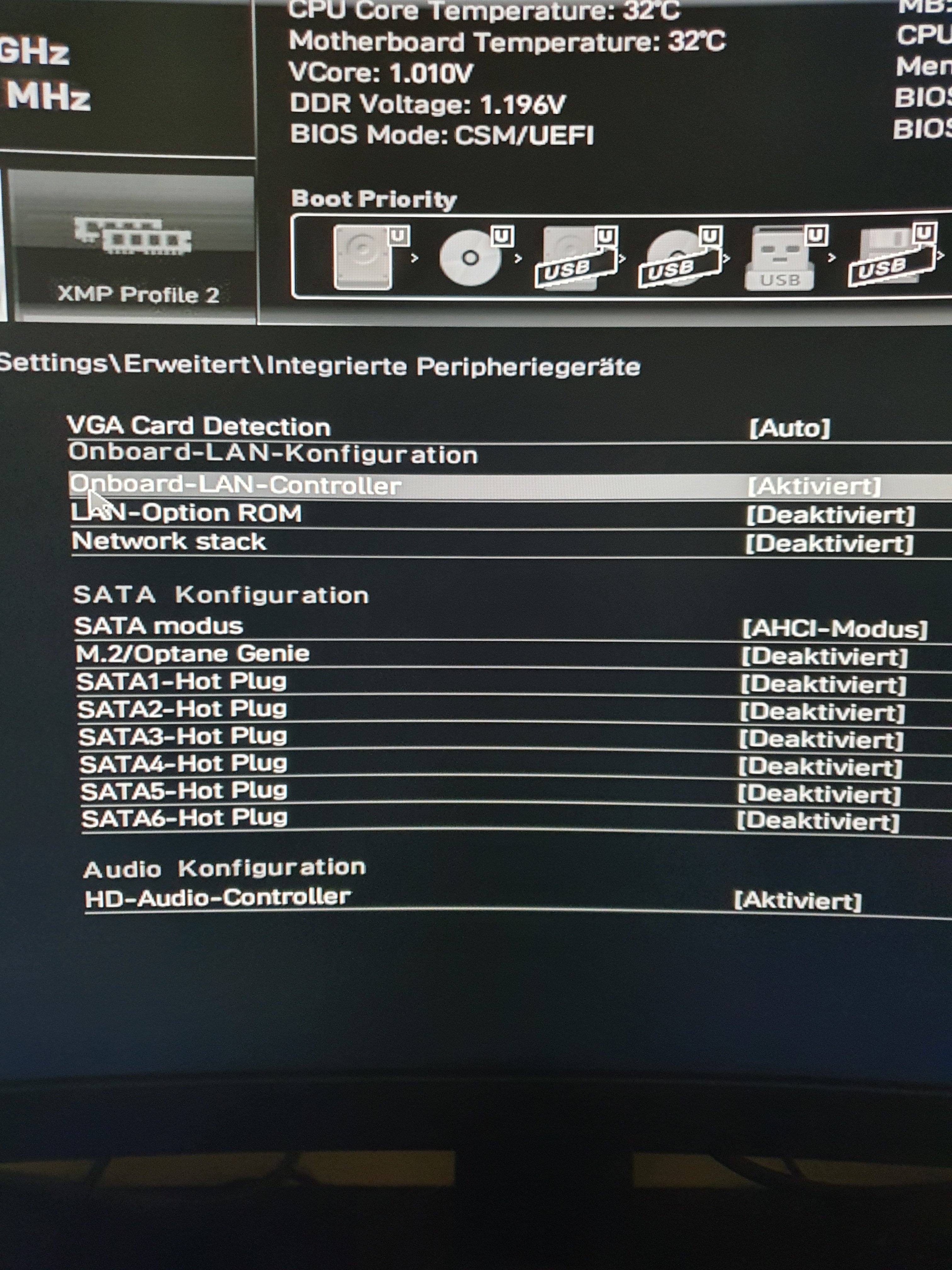also um den LAN-Chip im BIOS zu deaktivieren, musst du zuerst gleich nach dem einschalten des PCs schnell hintereinander die entf/del-Taste drücken. Dann sollte der PCs ins BIOS booten. Mit F7 müsste dann der Advanced Mode aufgerufen werden. Dort das Menü "Settings" auswählen Hier sollte es wiederum ein Untermenü namens "advanced" geben und dort solltest du die Option zum abschalten des LAN-Adapters finden (vorausgesetzt, das BIOS deines Boards ähnelt dem meines Z 490 Tomahawk).Danach nicht vergessen, mit F10 abzuspeichern!