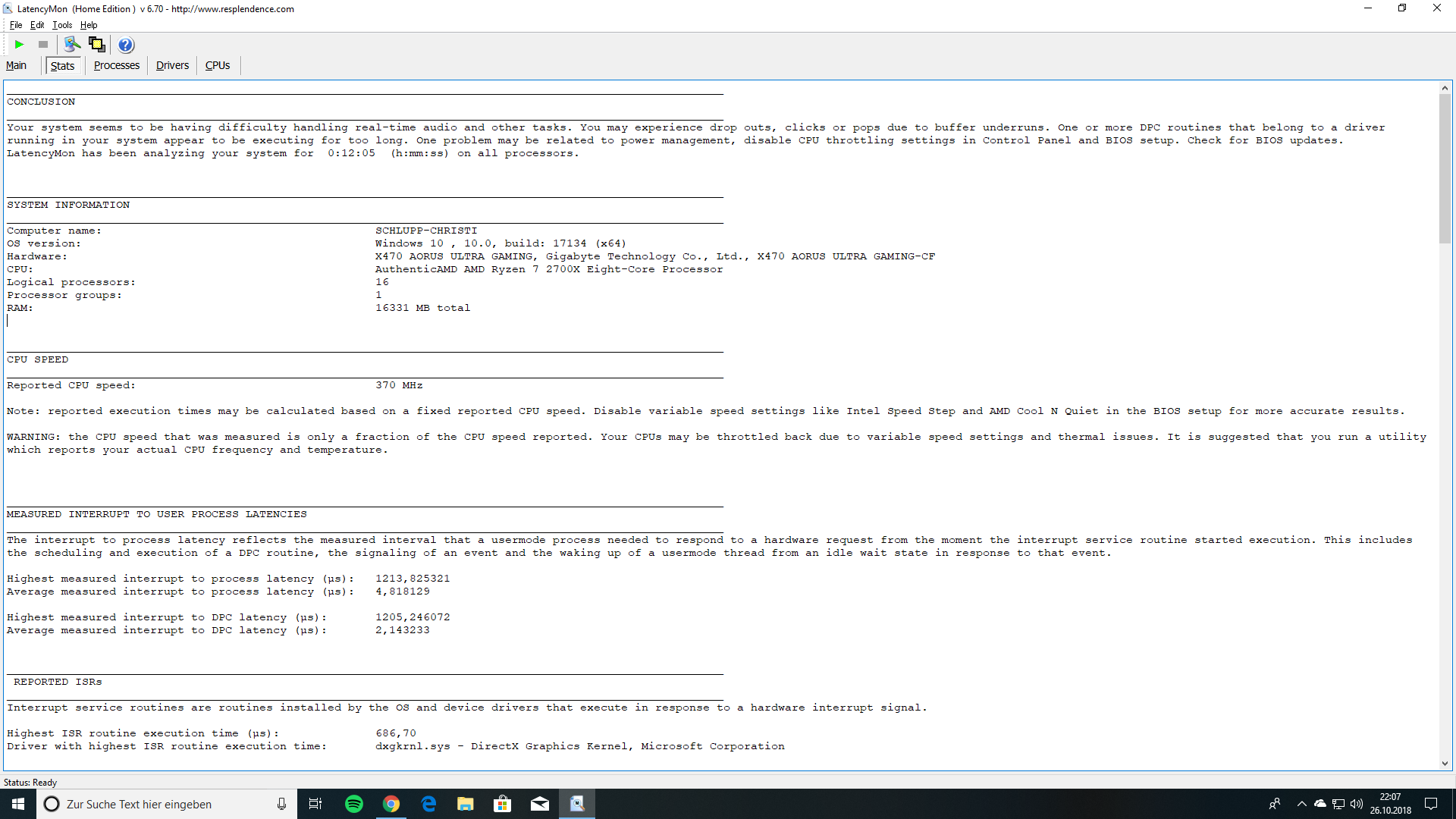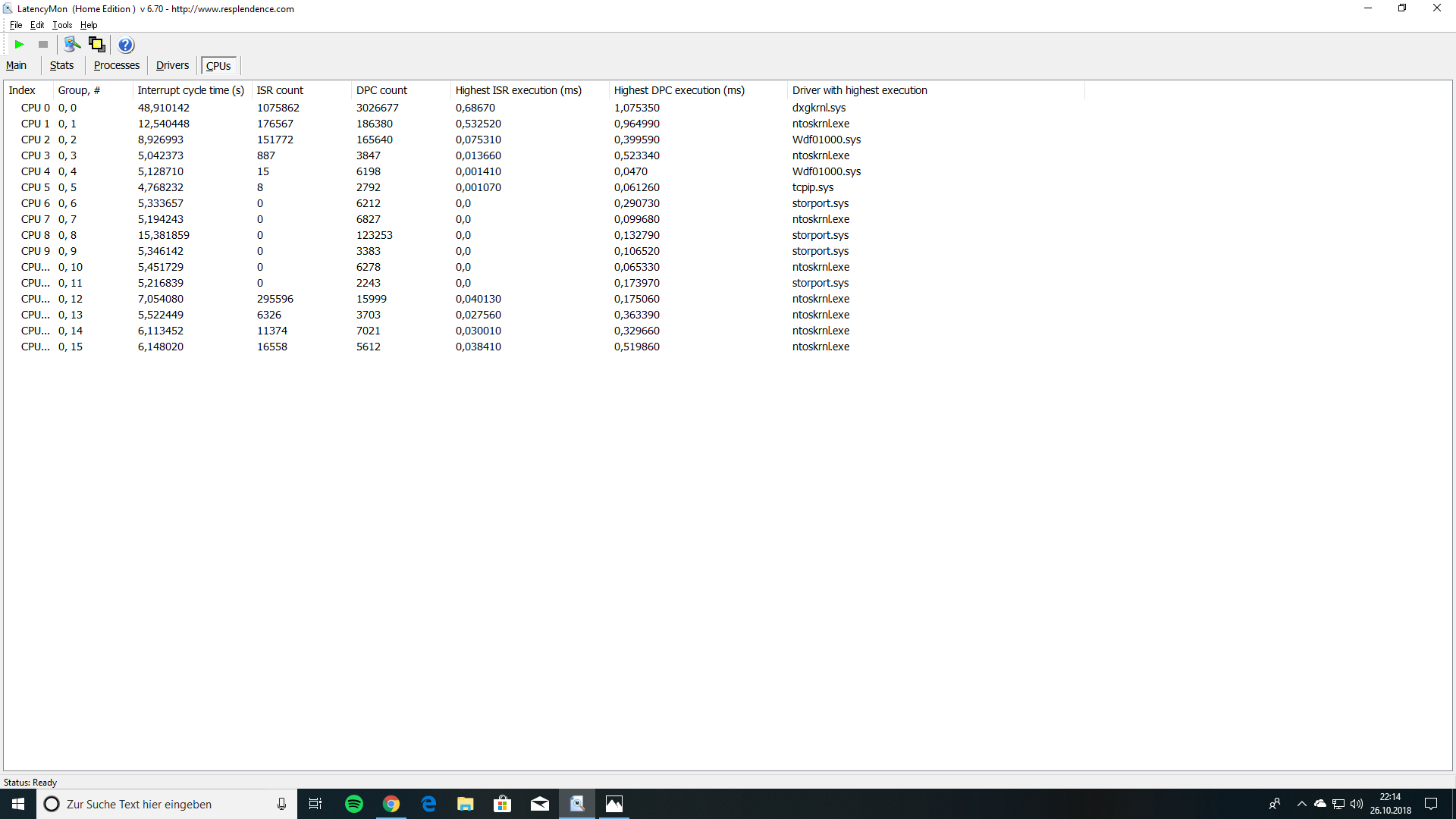 Scheint ein größeres Problem zu sein , hat zumindest die HÖCHSTE Unterbrechungszeit. Kann ich z.Z. grade nicht lösen, kein PC frei.