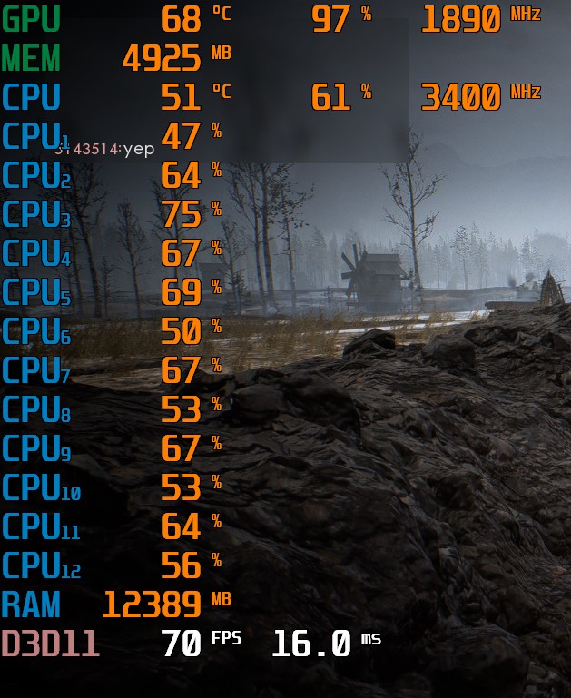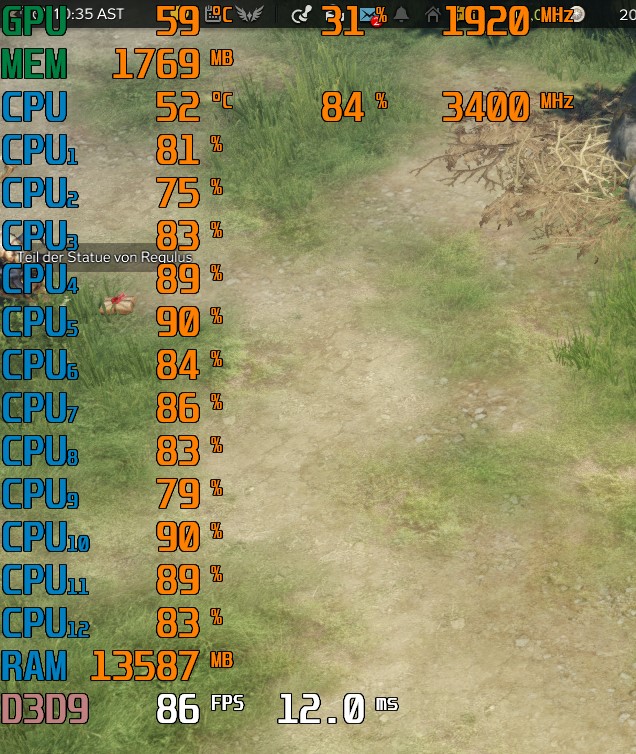 Hab in den Spielen die Grafikeinstellungen auf das niedrigste gestellt zum Test und diese Ruckler sind trotzdem noch aufgetaucht. Hab auch mit MSI Afterburner mir die Daten von meiner CPU, GPU und RAM anzeigen lassen. Konnte aber persönlich nicht viel damit anfangen. Die Screenshots sind einmal aus Lost Ark (GPU = 31%) und der andere aus Battlefield (GPU = 97%).